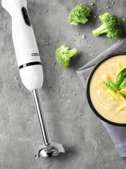 Mit Leichtigkeit zaubern Sie im Handumdrehen köstliche Suppen und Eintöpfe aus frischem Gemüse. Aber das ist noch längst nicht alles! Unser Stabmixer mischt, mixt und zerkleinert nach Herzenslust. Kreieren Sie cremige Smoothies, erfrischende Milchshakes, fruchtiges Kompott und verführerische Soßen. Sie können auch köstliche Aufstriche, hausgemachten Hummus und verlockende Dips selbst herstellen.