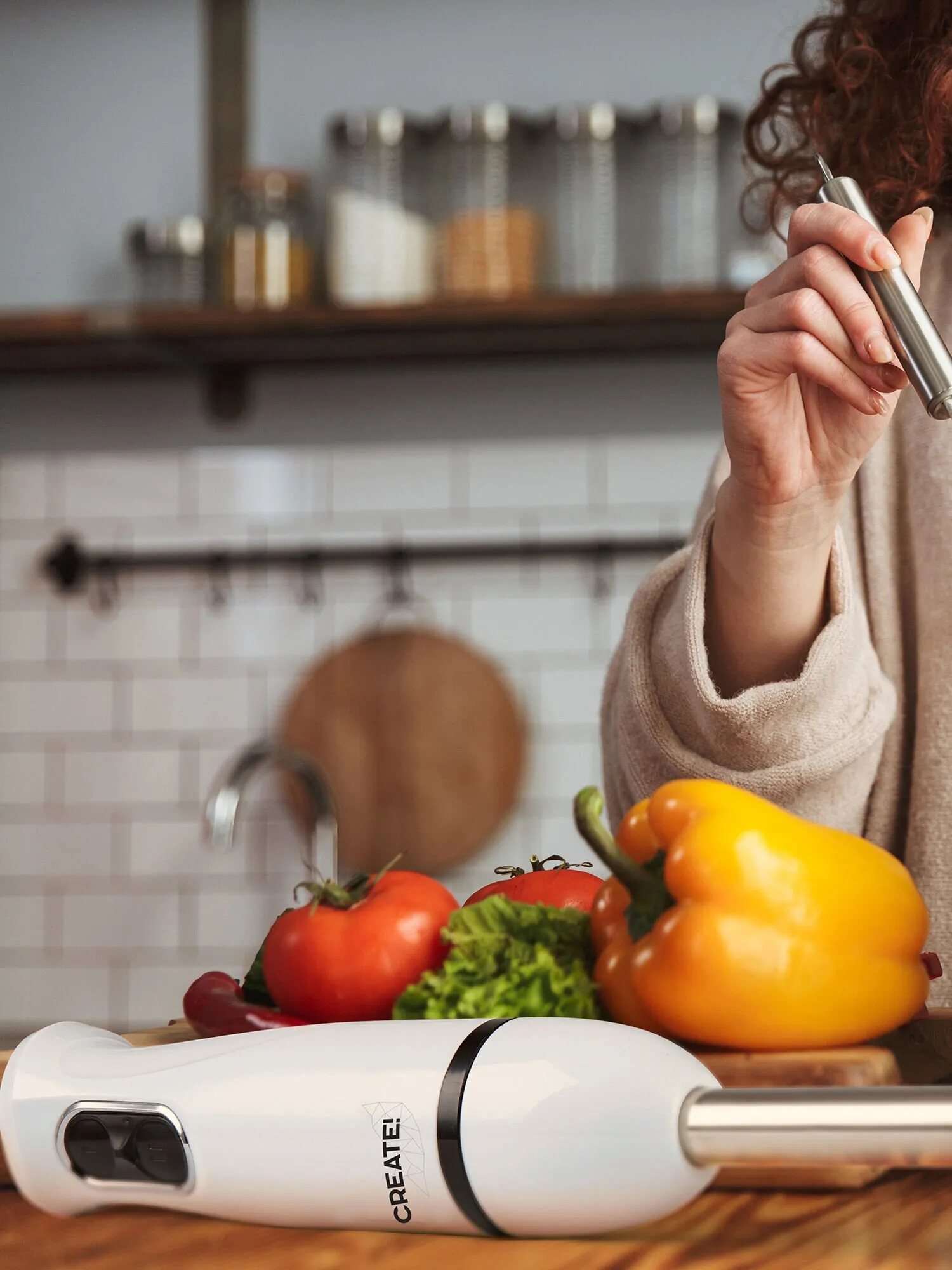 Egal, ob Sie zarte Zutaten wie frische Kräuter oder härtere Bestandteile wie Trockenfrüchte, Ingwer oder gefrorene Zutaten verarbeiten möchten – unser Stabmixer meistert jede Herausforderung. Lassen Sie Ihrer Fantasie freien Lauf und entdecken Sie die unendlichen Möglichkeiten der kulinarischen Welt.