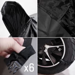 Die extra große, universelle Schutzplane schenkt Ihrem Fortbewegungsmittel den idealen Schutz vor Regen, Staub, Schmutz oder Schnee. Ob Trike, Quad, elektrischer Krankenfahrstuhl oder Rollstuhl: Die große Abdeckhülle hat für Ihr Fahrgerät genug Platz. Mit wenigen Handgriffen ist die robuste Abdeckhülle ruckzuck übergestülpt. Die winterfeste Abdeckung wird mithilfe von extra angenähten Riemen an Vorder-/Hinterrad befestigt, sodass auch bei etwas stärkerem Wind sie Ihr Fahrzeug zuverlässig schützt. Das besonders reißfeste Material zeichnet sich durch hohe Schmutzabweisung sowie seine Grifffestigkeit aus. Sollte die blickdichte Plane doch einmal etwas verschmutzt sein, können Sie die Verunreinigung besonders schnell vom Material entfernen. Sie erhalten die Abdeckhilfe mit zwei extra großen Spiegeltaschen.