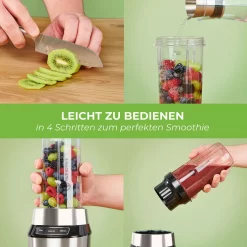 Dieser Smoothie-Maker ist der perfekte Personal Blender fĂŒr all diejenigen, die einen kraftvollen Smoothiemaker / Mini-Standmixer suchen, um cremig feine Smoothies zu zaubern, und dass bei maximaler Schonung der NĂ€hrstoffe. In 4 einfachen Hauptschritten hast du den perfekten Smoothie oder Shake zubereitet. Obst/GemĂŒse zugeben, FlĂŒssigkeit zugeben, Starten und in kĂŒrzester Zeit genieĂen. GenieĂe deine gesunden und cremigen Smoothies im Handumdrehen!
