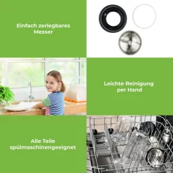 NÀhrstoffe zu zerstören. Zur vereinfachten Reinigung kann das Messer einzeln entnommen und gereinigt werden.