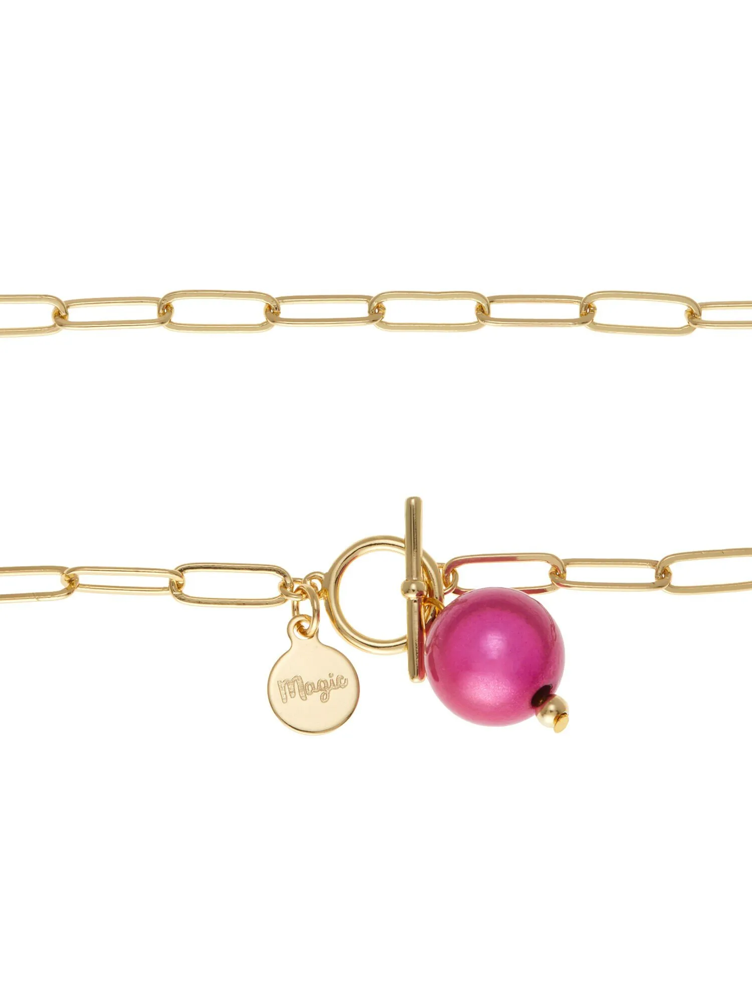Das HerzstĂŒck dieser Ankerkette mit AnhĂ€nger strahlt in einem faszinierenden Pink oder einem erfrischenden GrĂŒn. Die Kette ist vergoldet und unterstreicht das Leuchten der Magic Pearl. Der Knebel-Verschluss der Ankerkette sorgt fĂŒr einen sicheren Halt. Jedes Detail wurde sorgfĂ€ltig gestaltet, um die Aura der Eleganz und Faszination zu untermalen, die von diesem SchmuckstĂŒck ausgeht.