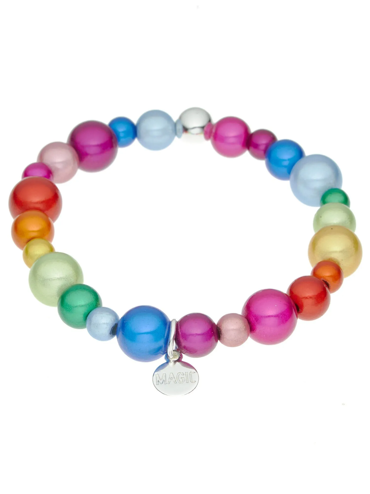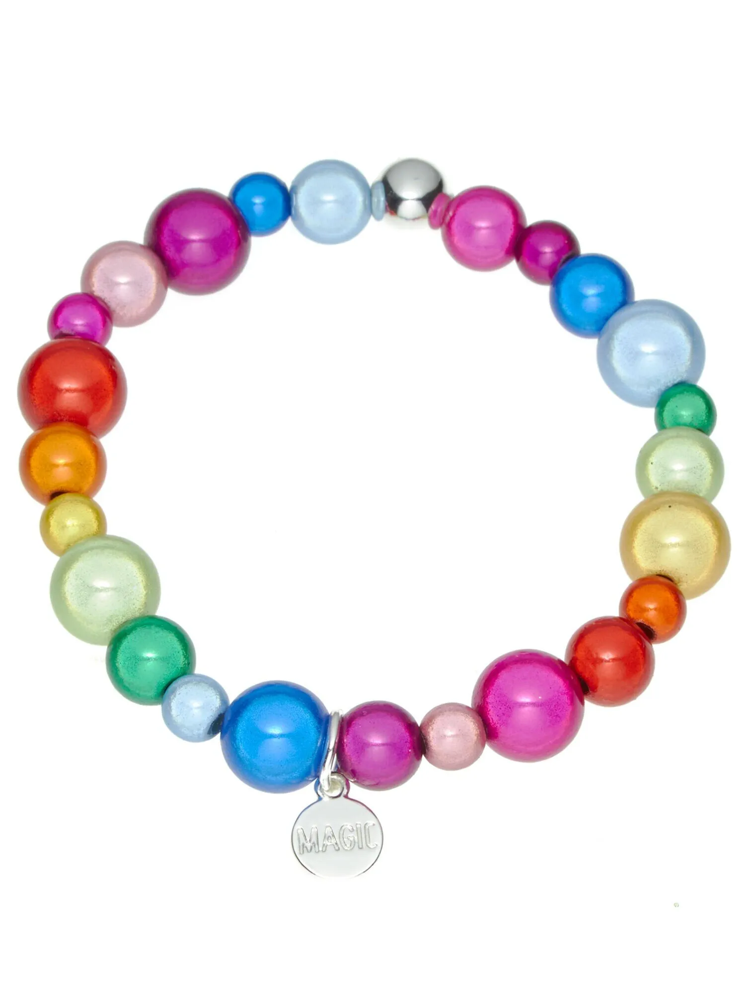 Die leuchtenden Magic Pearl sind nicht nur auf elastischem Band gefĂ€delt, sondern strahlen auch mit einer tiefen IntensitĂ€t. Das Besondere liegt in der kunstvollen Anordnung der lebendigen Farben â ein Ausdruck von Persönlichkeit und Stil.Â