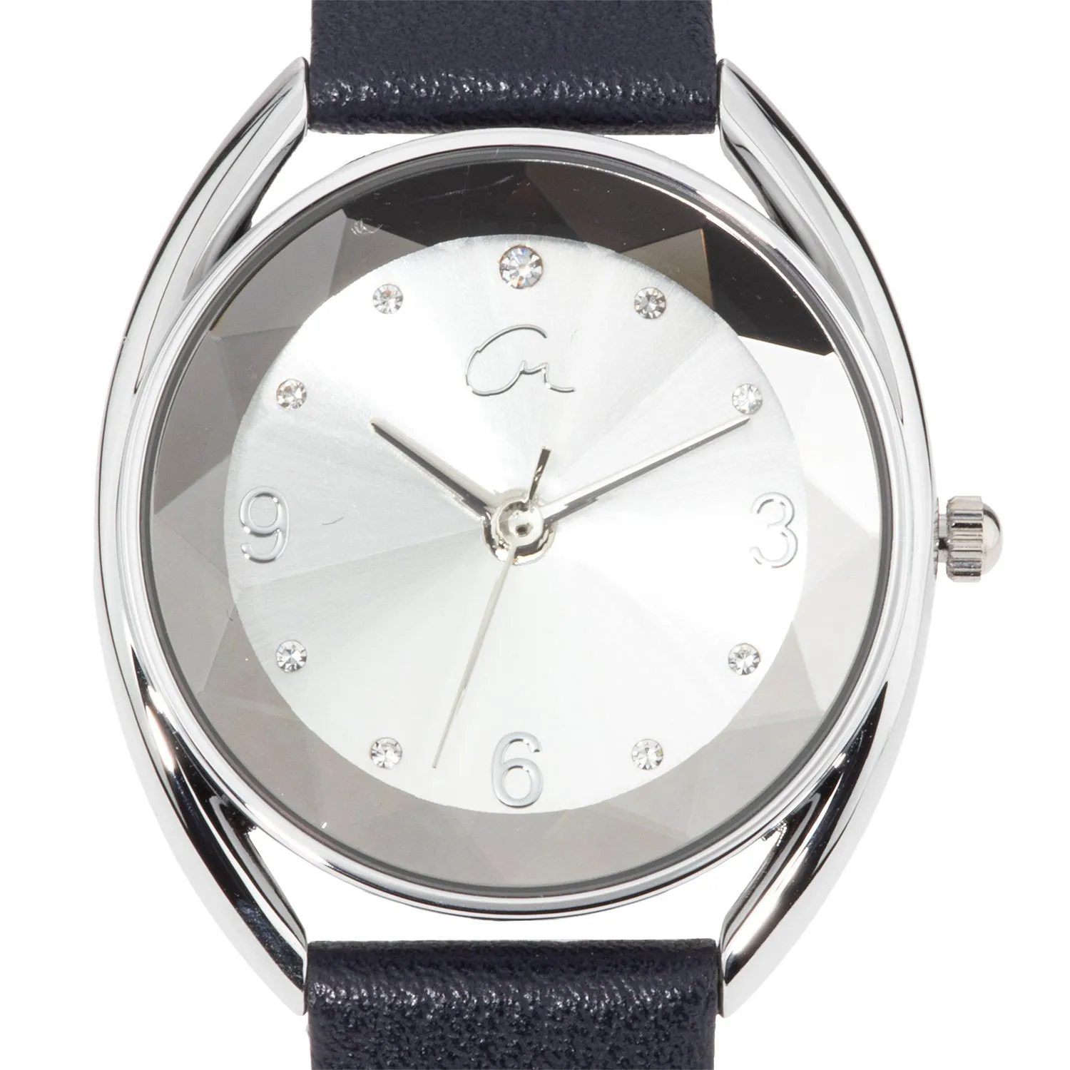 - Indexe: je 1 weißer Zirkonia auf jeder Stunde, arabische Ziffern 3,6,9