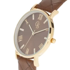 - Römische Ziffern auf 4, 6, 8 und 12 Uhr und 18 Kristalle (Zirkonia)