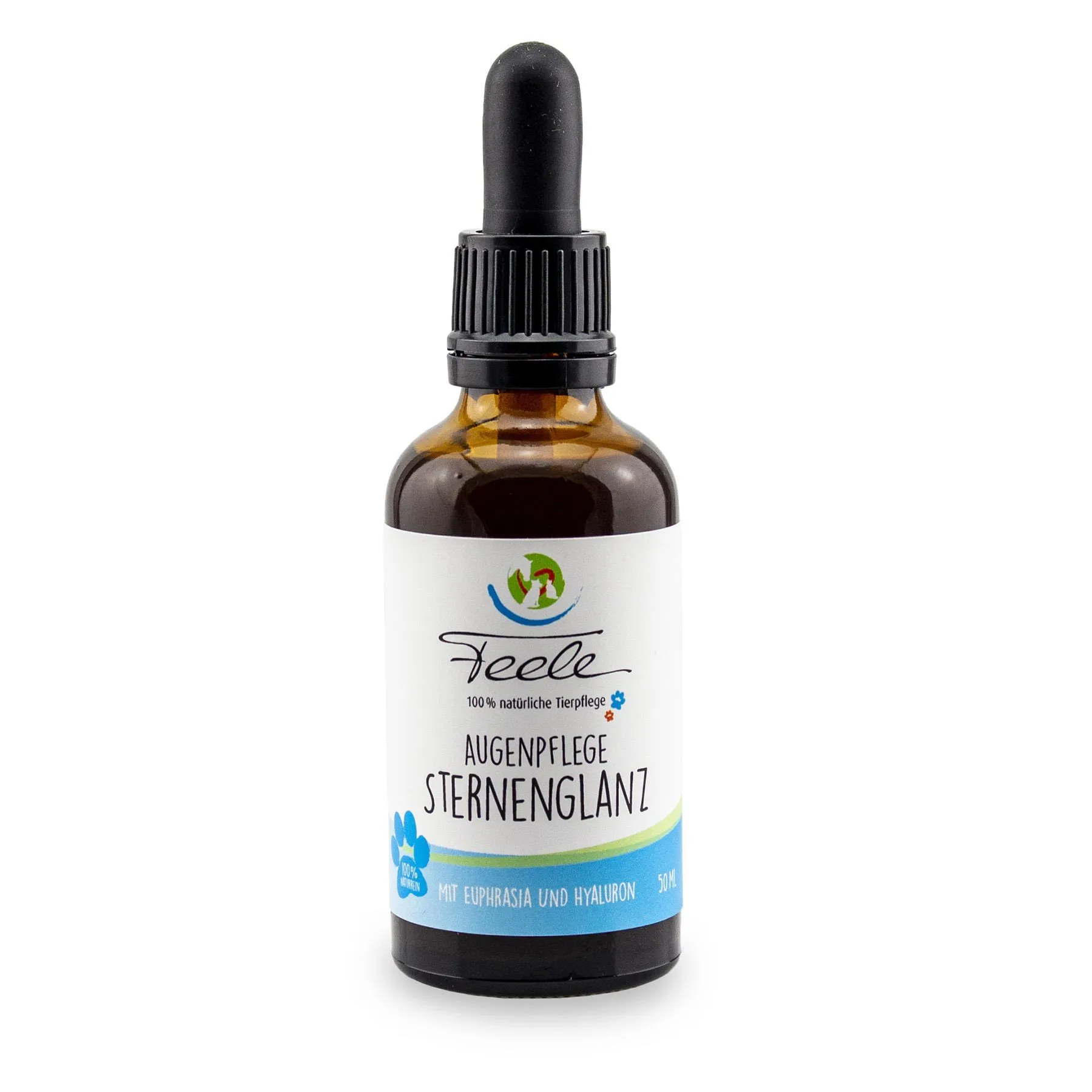 Feele Augenpflege „Sternenglanz“ unterstützt die Reinigung und Pflege der Augen von Hund, Katze und Pferd auf sanfte und schonende Weise. Sie pflegt rein mit natürlichen Inhaltsstoffen wie dem Augentrost.