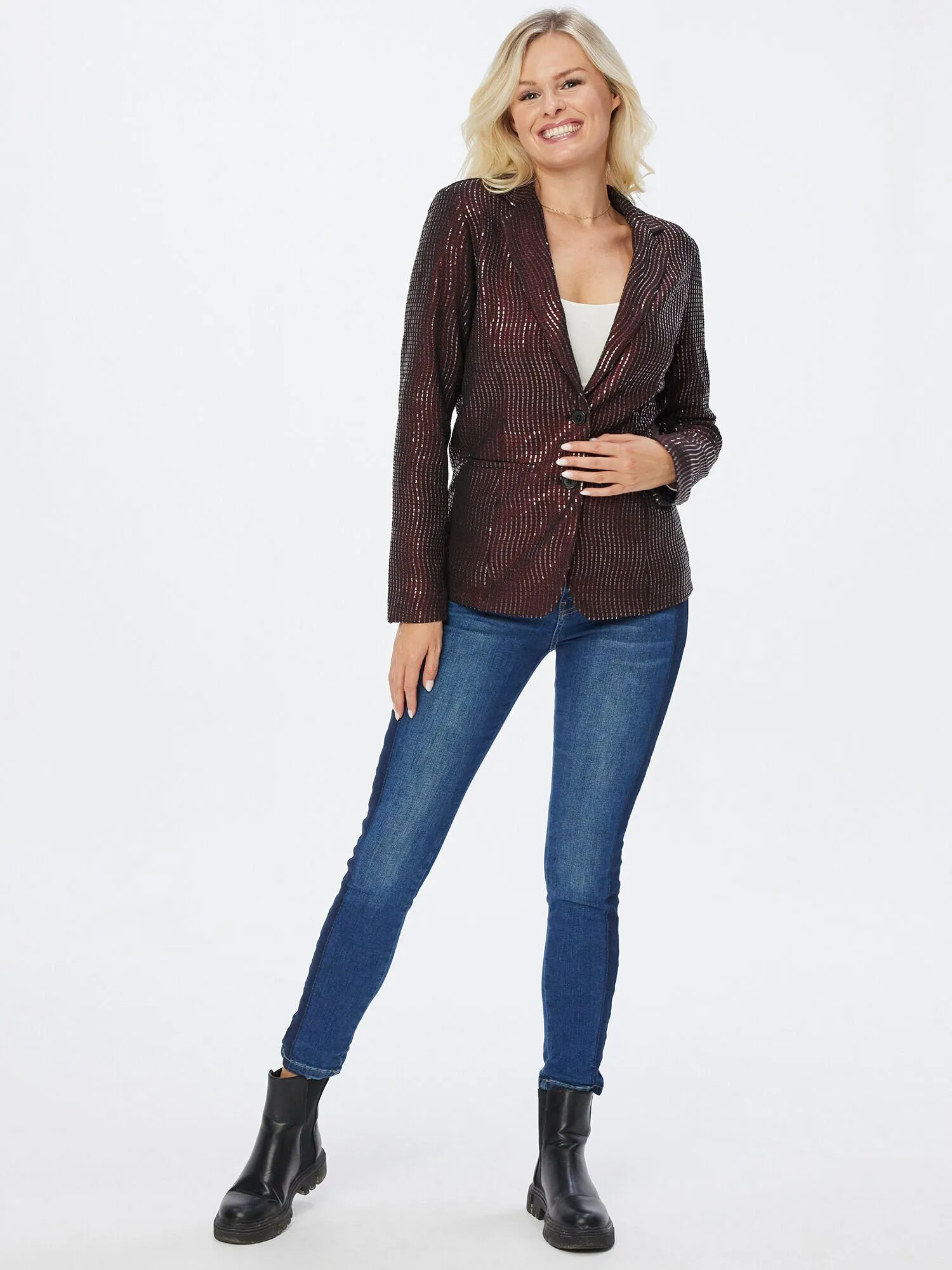 - Materialspezifikation: Stretch Jacquard mit Glanzgarn und Paillettenprint