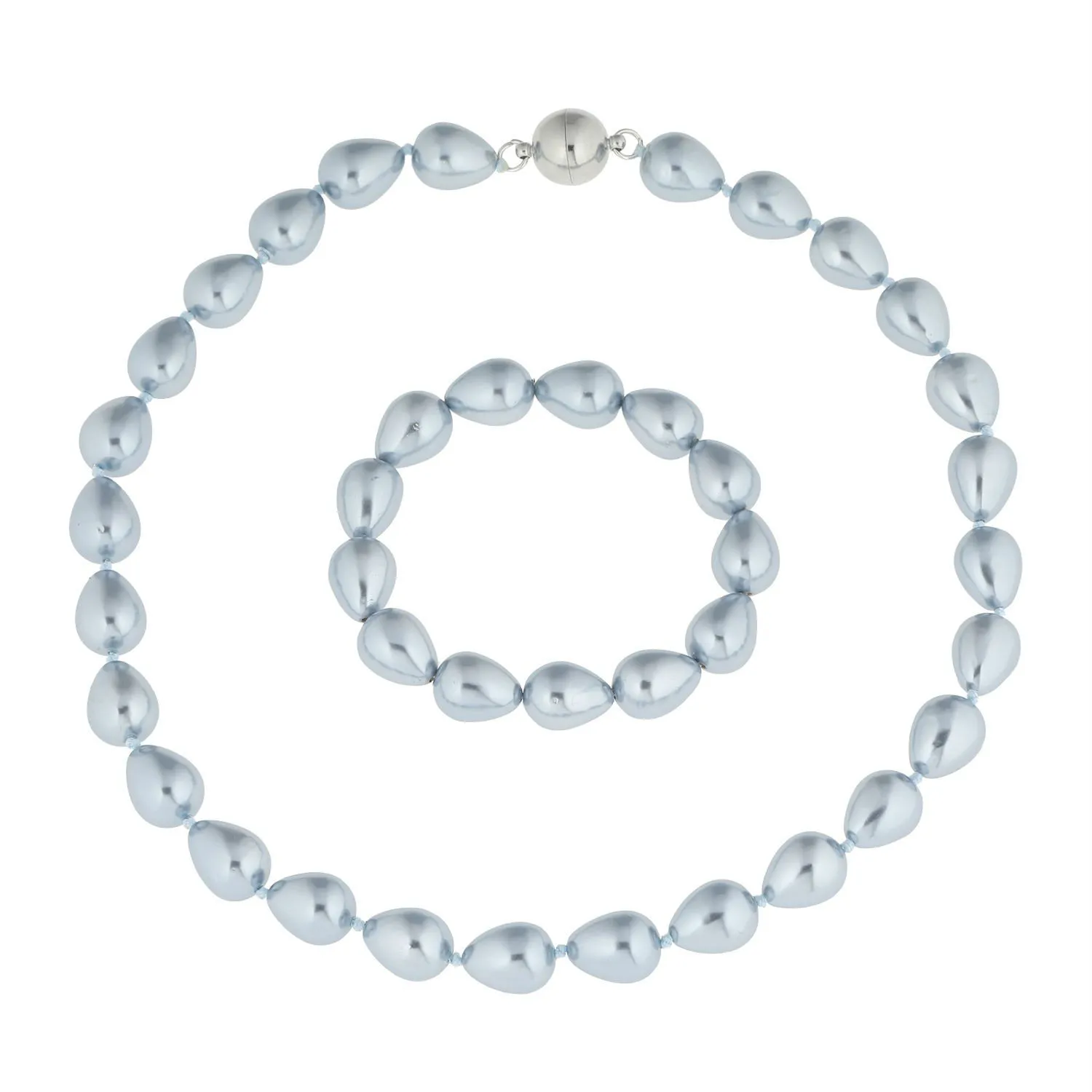 Christian Materne Just Pearls Collier & Armband, Muschelkernperlen, Tropfenform