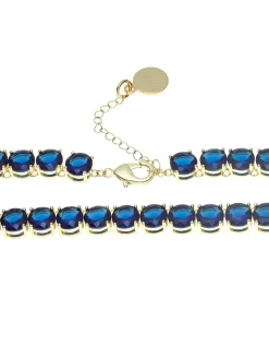 Vergoldet und mit 55 blauen Kristallen besetzt, strahlt dieses Collier eine unvergleichliche Anziehungskraft aus. Die facettierten, runden Kristalle fangen das Licht ein und erzeugen ein faszinierendes Leuchten. Der Karabinerverschluss bietet nicht nur Sicherheit, sondern vollendet das Design mit einer eleganten Note.