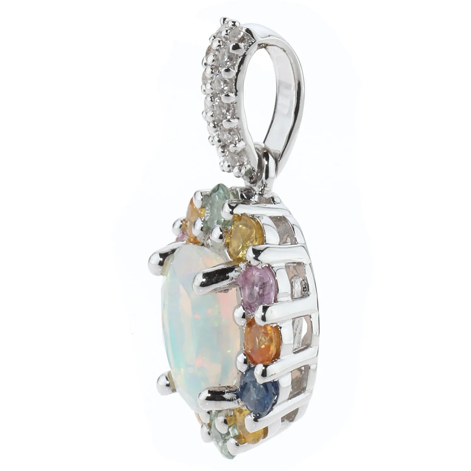 CM Edelsteinzauber Edelopal-AnhÀnger, Afrikanischer Opal, Saphir und Zirkon, Silber 925 rhodiniert