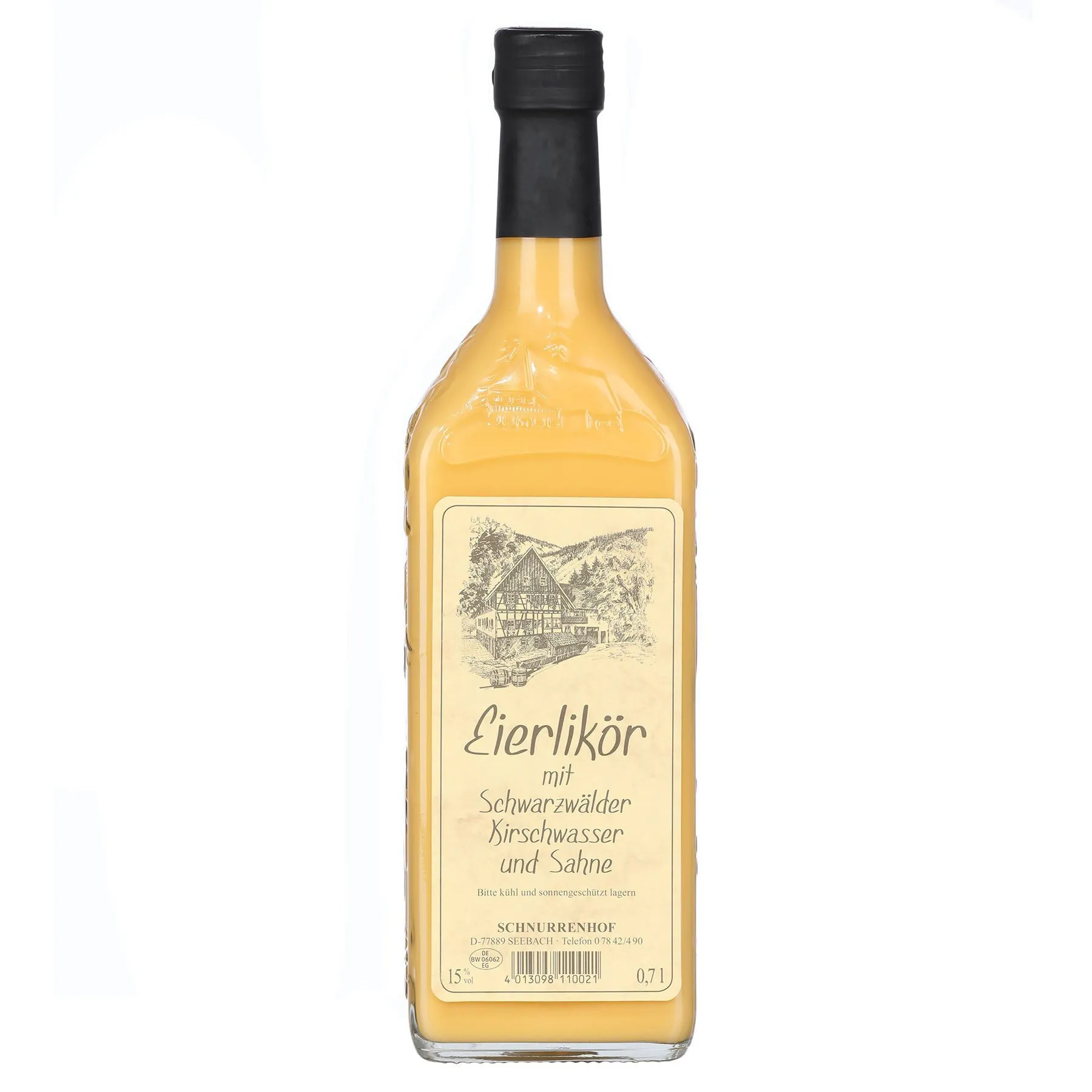 …..Ob als Krönung auf einem Eisbecher, pur oder als Mischgetränk auf Partys oder als Zutat beim Backen: Eierlikör schmeckt nicht nur in der Oster- oder Weihnachtszeit – Er ist das ganze Jahr über eine kleine Sünde wert. Da Schnapsbrennen eine alte Tradition im Hause Schnurrenhof ist und diese über Generationen weitergegeben wurde, entsteht solch eine vorzügliche Köstlichkeit. Der Familienbetrieb verwendet erstklassige Qualitätseier der Güteklasse A, die aus dem eigenen Geflügelhof stammen und mit großer Sorgfalt ausgewählt werden. Der im Geschmack sanft fließende und cremige Eierlikör mit 15 % Vol. wird nur aus hochwertigstem Schwarzwälder Kirschwasser des Schnurrenhofes hergestellt. Eine Versuchung, der man nicht wiederstehen kann.