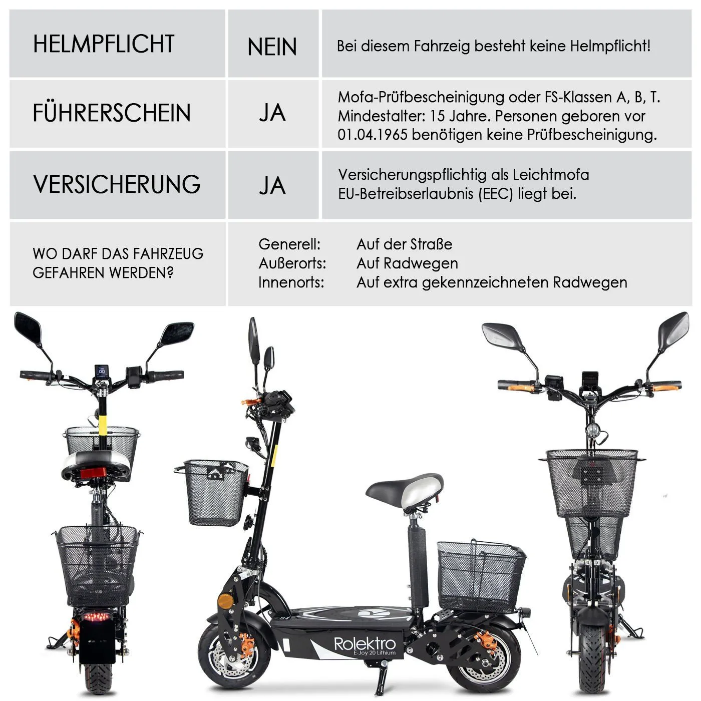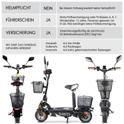 Der Elektroroller Travel & Fun 20 gilt als Leichtmofa und ist daher von der Helmpflicht befreit. Aus Sicherheitsgründen wird aber das Tragen eines Helms empfohlen.
