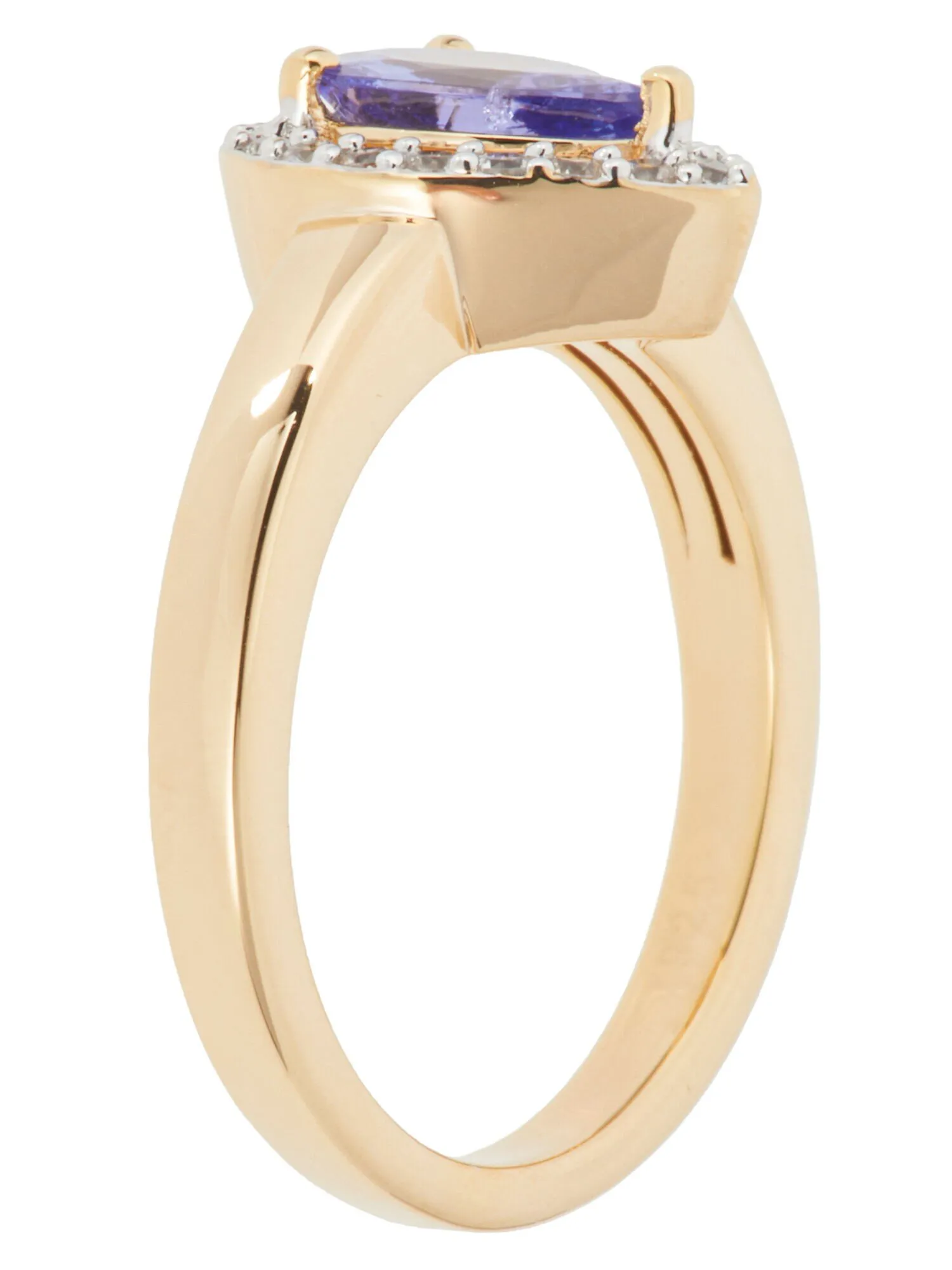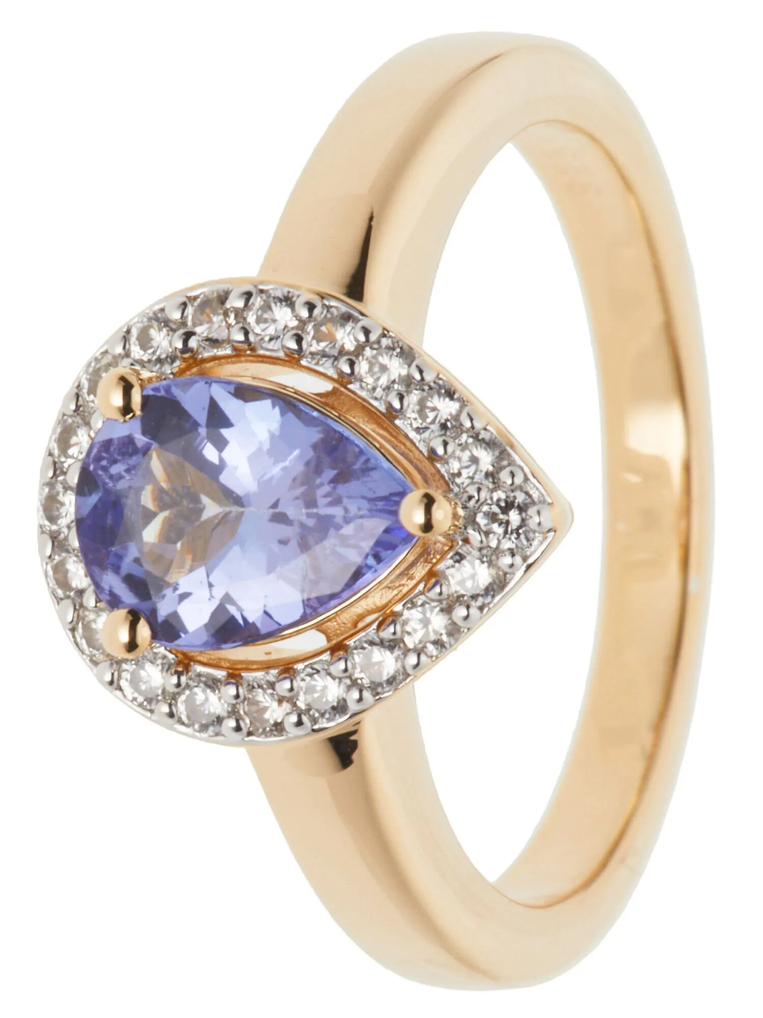 1x Christian Materne Edelsteinzauber Entourage-Ring, Tansanit, Zirkon, Silber 925, vergoldet