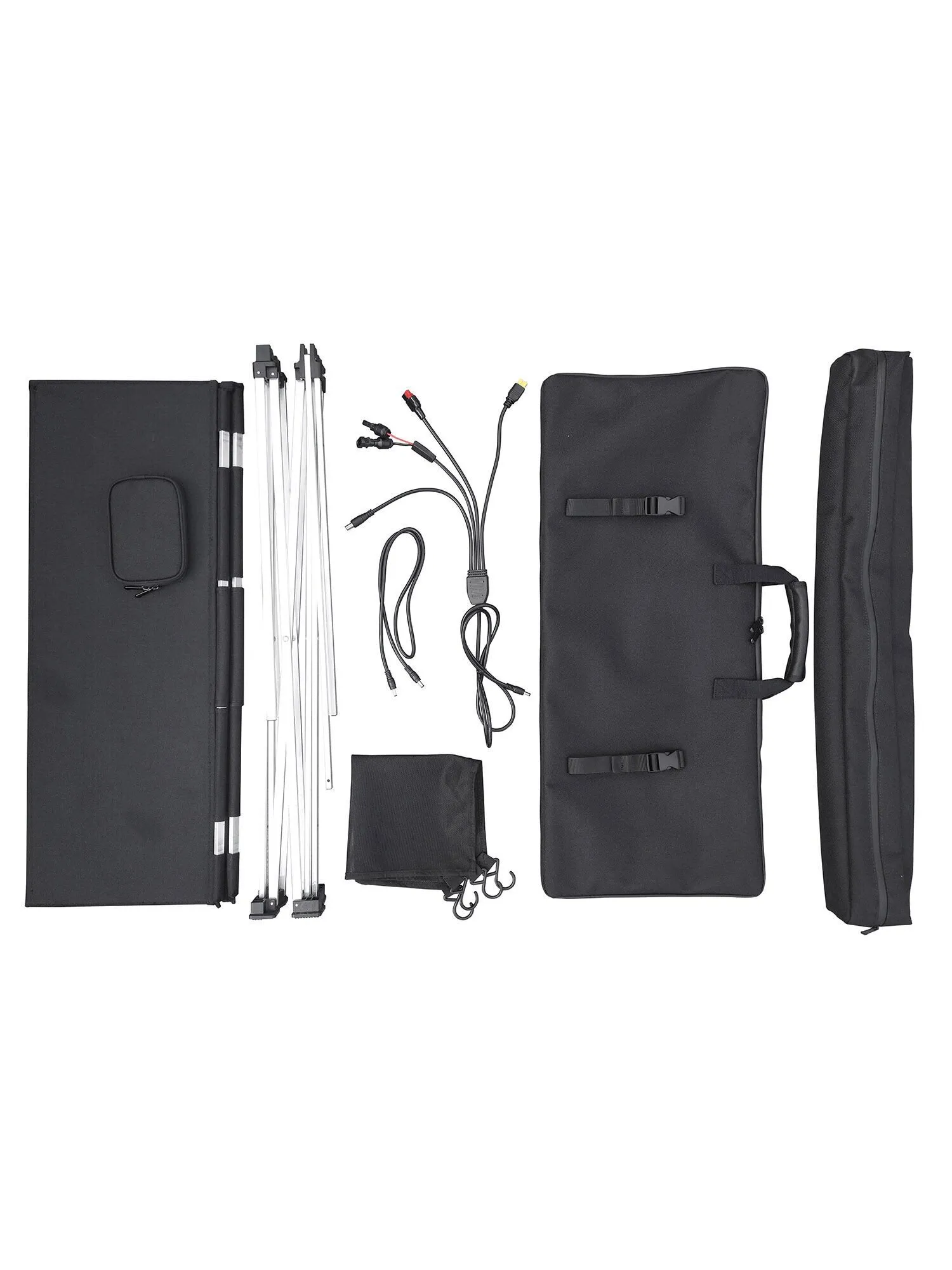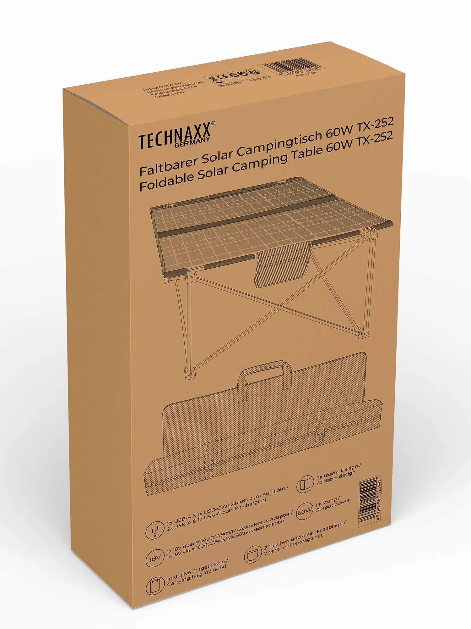 Leistung und Komfort für Ihre Naturerlebnisse. Der faltbare Solar-Beistelltisch ist viel mehr als nur ein Tisch – er ist nicht nur ein einfacher Tisch, sondern ein vielseitiges Outdoor-Gerät, das Ihre Camping- und Outdoor-Erlebnisse auf eine neue Ebene hebt. Mit einer leistungsstarken Solar-Tischplatte von 60 Watt können Sie überall Energie erzeugen und Ihre Geräte aufladen, unabhängig davon, ob Sie sich in der Wildnis oder auf einem Campingplatz befinden. Dank des zusätzlichen DC5521-Ausgangs mit 18 V können Sie verschiedene Adapter verwenden und so Ihre Optionen für die Stromnutzung erweitern.
