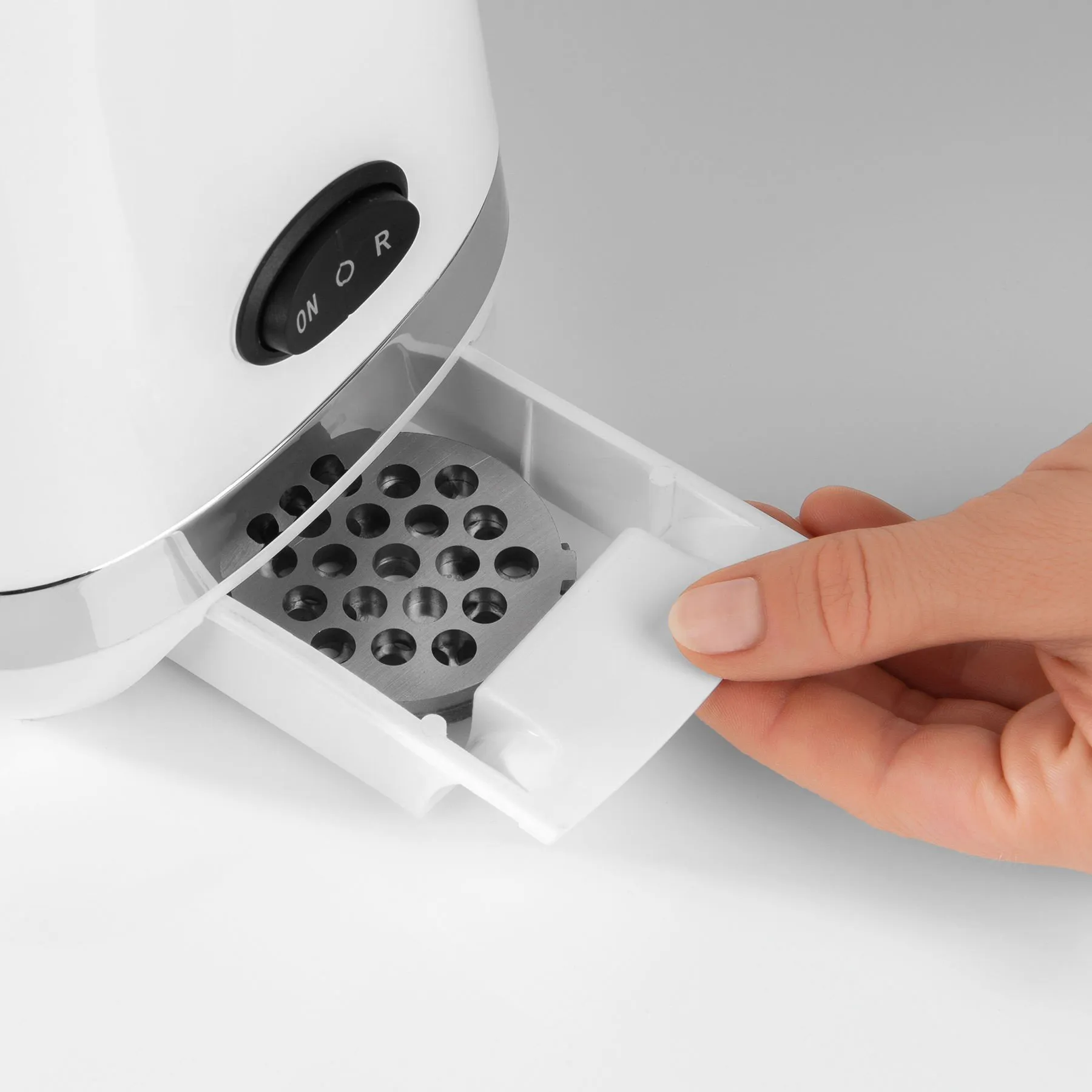 Mit dem elektrischen Fleischwolf von MAXXMEE wissen Sie auch bei Ihren Fleisch- und Fischgerichten, was drinsteckt. Bereiten Sie grobes & feines Hack für Burgerpatties, Würstchen oder Spritzgebäck selbst zu. Das umfangreiche Zubehör, die 2 Lochscheiben und 3 Spezialaufsätze ermöglichen vielseitige Food-Kreationen. Die 1.300 W Leistung sorgt zudem für gleichmäßige Ergebnisse mit einem Durchsatz von bis zu 1,5 kg pro Minute. Dank integrierter Reverse-Funktion bleiben nahezu keine Überreste mehr im Gerät. Alle Aufsätze sind separat zu reinigen.