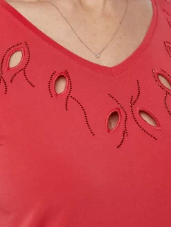 Entdecken Sie das Sarah Kern Frenchjersey Shirt mit seinem raffinierten Cut-Out-Effekt, der subtile Einblicke gewährt. Verziert mit funkelnden Strasssteinen, verleiht dieses Shirt Ihrem Look das gewisse Etwas. Erhältlich in den Farben Koralle und Marine, verleiht dieses Shirt Ihrem Look eine subtile Verspieltheit und einen Hauch von Glanz. Ein Must-Have für Ihre Garderobe!