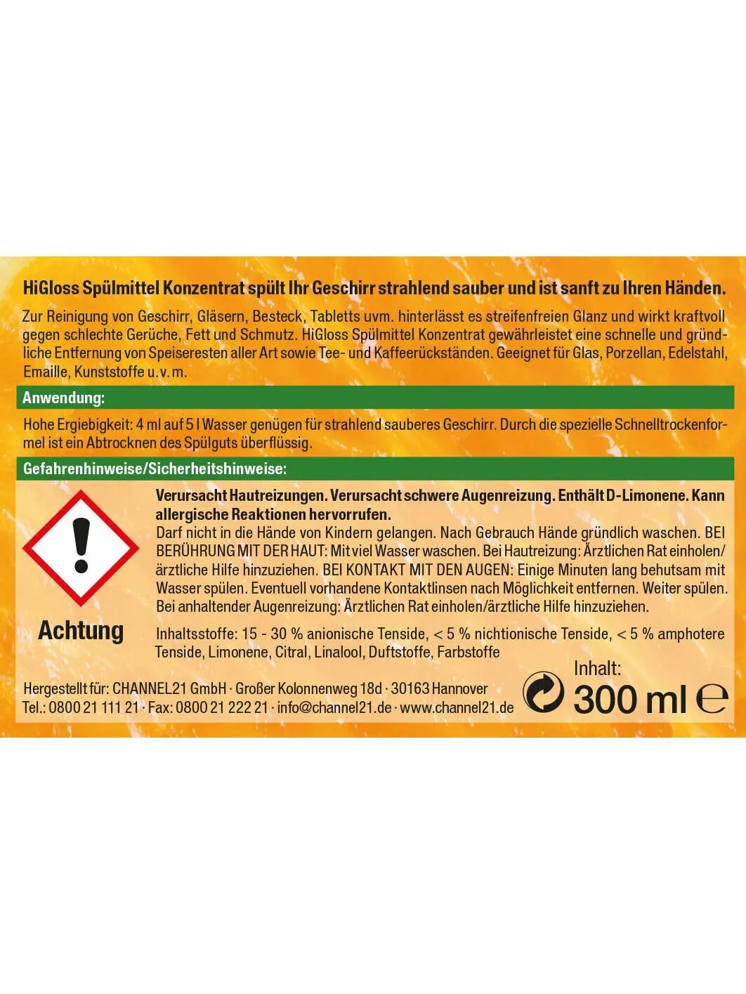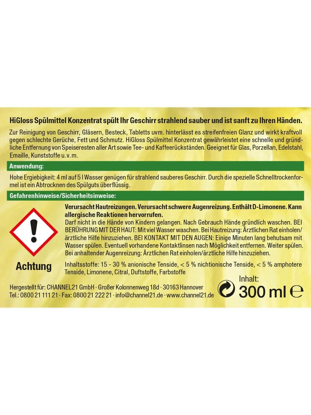 2 x HiGloss Geschirrspülkonzentrat, je 300 ml