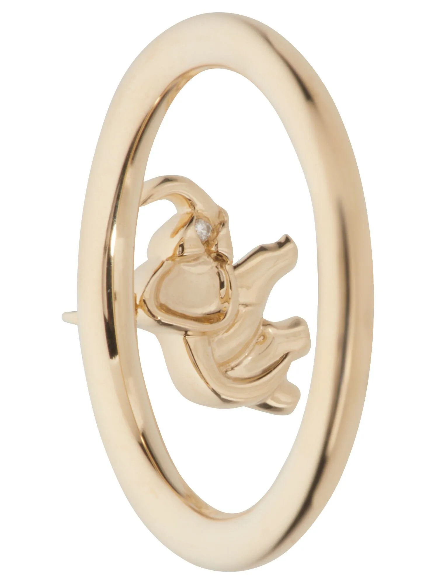 Der Ring, aus feinem Gold 585 gefertigt, schmückt Ihre Hand mit einem filigranen Elefantenanhänger, der mit zwei funkelnden Diamanten im Brillantschliff verziert ist. Ein zartes Schmuckstück, das Ihre Persönlichkeit perfekt mit Eleganz und Stil unterstreicht.