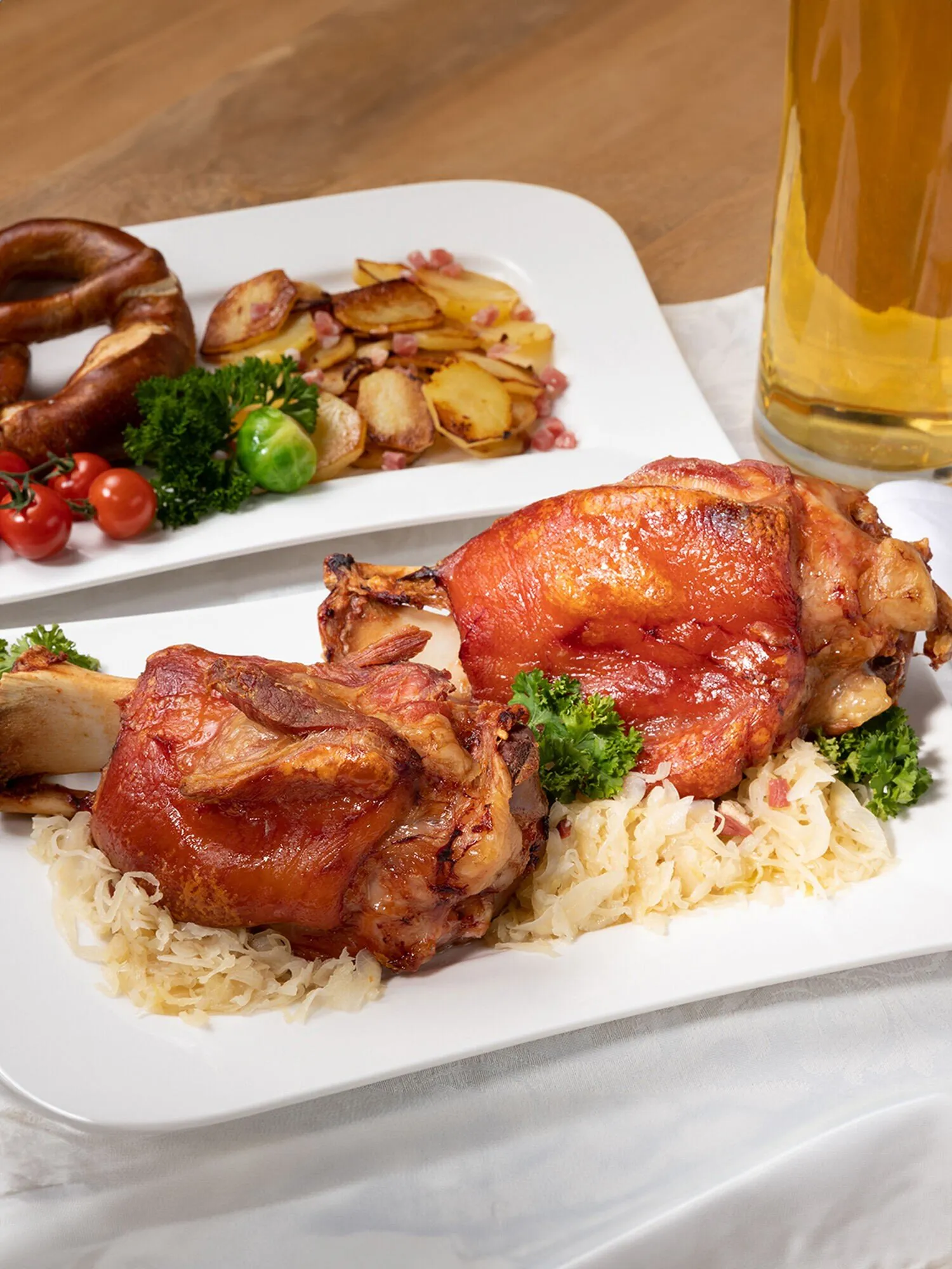 Genießen Sie die Grillhaxen warm oder kalt! Genießen Sie diese Grillhaxe als kalte oder warme Vesper mit Brot! Oder Sie servieren sie als Hauptmahlzeit mit Sauerkraut, Kartoffelpüree oder auch mit Knödel.