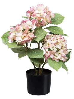 Die Kunstpflanze begeistert mit einer Höhe von ca. 53 cm und ihrer liebevollen Nachbildung der Natur und detailgetreuen Gestaltung. Die zarten Blüten und üppige Blätterpracht bleiben Ihnen langjährig erhalten, ohne Pflegeaufwand. Ob im Eingangsbereich, Wohnzimmer oder Arbeitszimmer – die Hortensie wird überall zum Blickfang. Dank ihres schlichten Kunststofftopfs lässt sie sich mühelos in Ihr Ambiente integrieren und durch einen passenden Übertopf noch weiter verschönern.