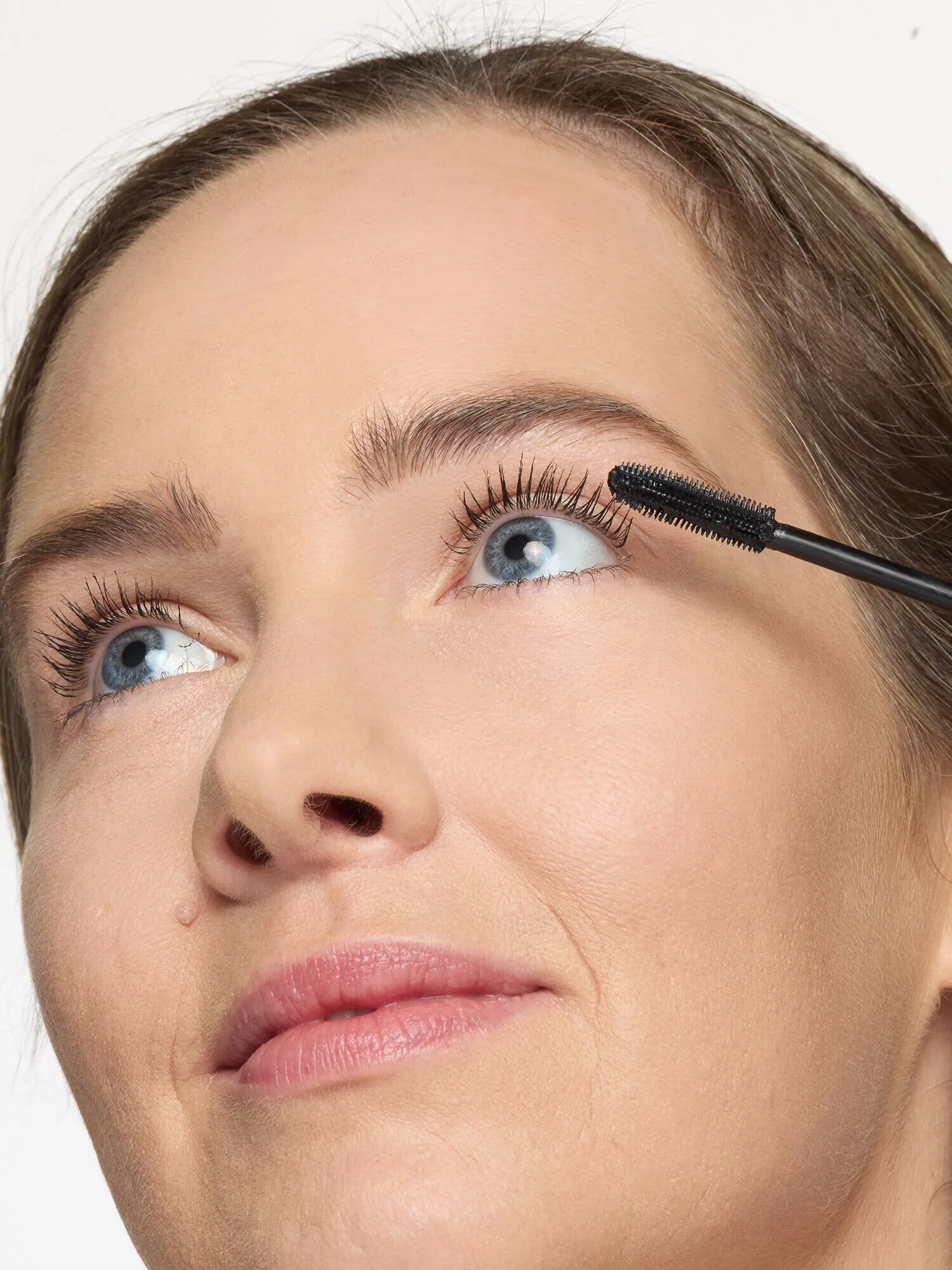 Anwendung: Blicken Sie nach unten und beginnen Sie die Anwendung bei den oberen Wimpern. Achten Sie darauf, die Wimpern von der Wurzel an zu erfassen und tuschen Sie die Wimpern mit der Bürste in Zick-Zack-Bewegungen von unten nach oben, um mehr Volumen zu erzielen. Wiederholen Sie den Vorgang mehrmals, um den gewünschten Definitionseffekt zu erzielen, ohne dass die Mascara zwischen den Anwendungen trocknet. Ein Tipp der Make-up-Künstler? Kämmen Sie am besten die Wimpern vor dem Auftragen der Mascara.