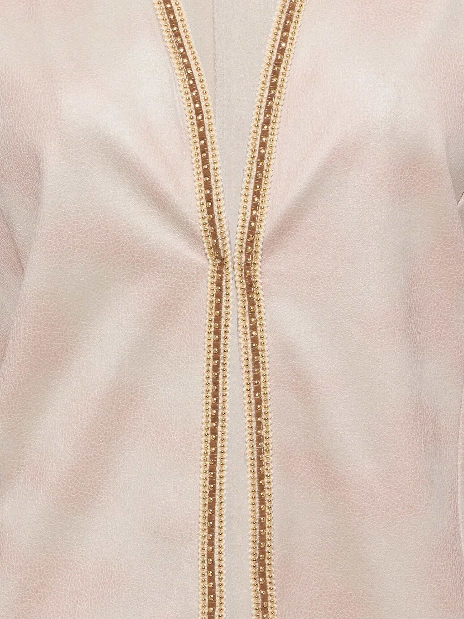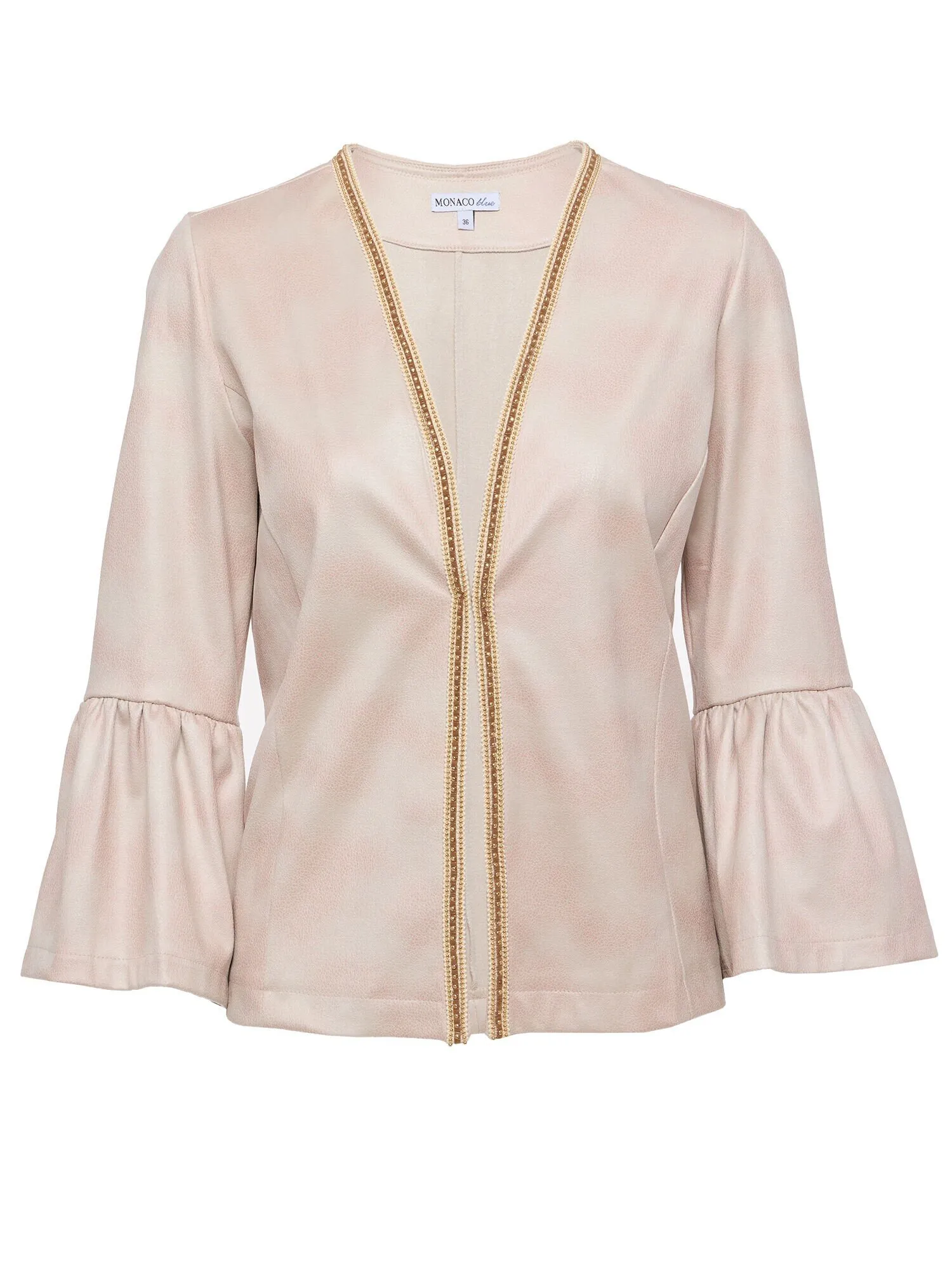 Entdecken Sie eine neue Dimension von Stil und GemĂŒtlichkeit mit unserer exquisiten Jacke in Lammnappaoptik. Die Violine Jacke ist mit einem eleganten Hakenverschluss ausgestattet, der eine perfekte Passform gewĂ€hrleistet. Die dekorative Zierpaspelierung entlang der Konturen verleiht der Jacke eine subtile Raffinesse, wĂ€hrend die SchmuckbordĂŒre und die goldfarbene Zierborte einen Hauch von Glamour hinzufĂŒgen.
