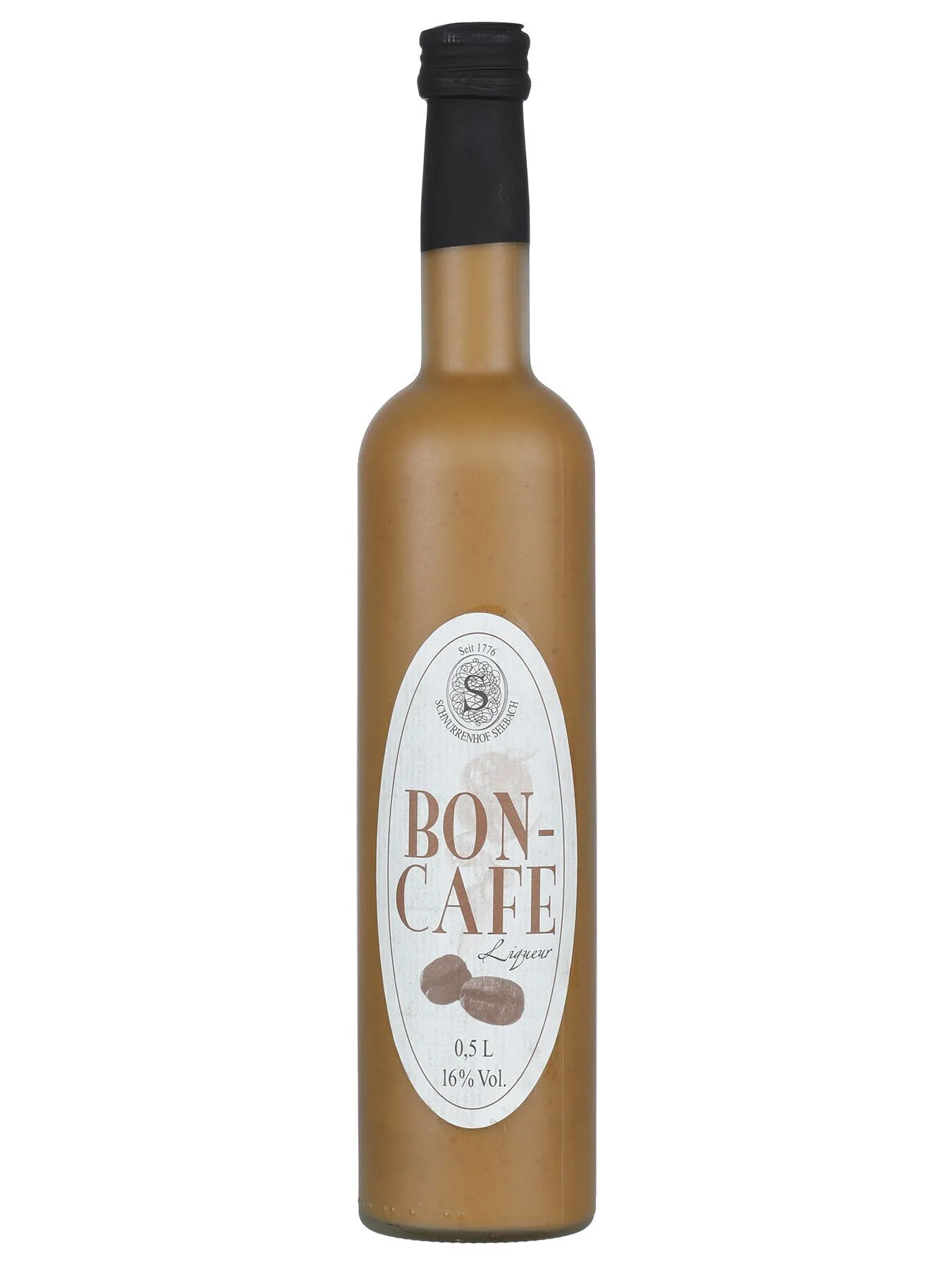 Der im Geschmack sanft fließende und crèmige Kaffeelikör mit 16 % Vol. wird nur aus hochwertigstem Schwarzwälder Kirschwasser, hochwertigem Kaffee, Sahne und Frischei des Schnurrenhofes hergestellt. Die verwendeten Eier kommen aus unserem eigenen KAT-zertifizierten Legebetrieb. Unser Kaffeelikör entspricht der EU-Norm. Unsere Hühner werden ausschließlich mit genfreiem Getreide gefüttert. Außerdem verwenden wir nur sehr gutes, ausgewähltes Schwarzwälder Kirschwasser. Sahne ist ein weiterer Inhaltsstoff. Charakteristisch für unseren Schwarzwälder Bon-Cafe ist die schöne, natürliche Milchkaffeebraune Farbe. Seine Konsistenz ist flüssig bis sämig. Der Geschmack hat eine eindeutige Kirsch- und Kaffeenote. Es handelt sich um ein völlig natürliches Produkt, ohne jegliche Zusätze (keine Geschmacksverstärker, keine Stabilisatoren etc.).