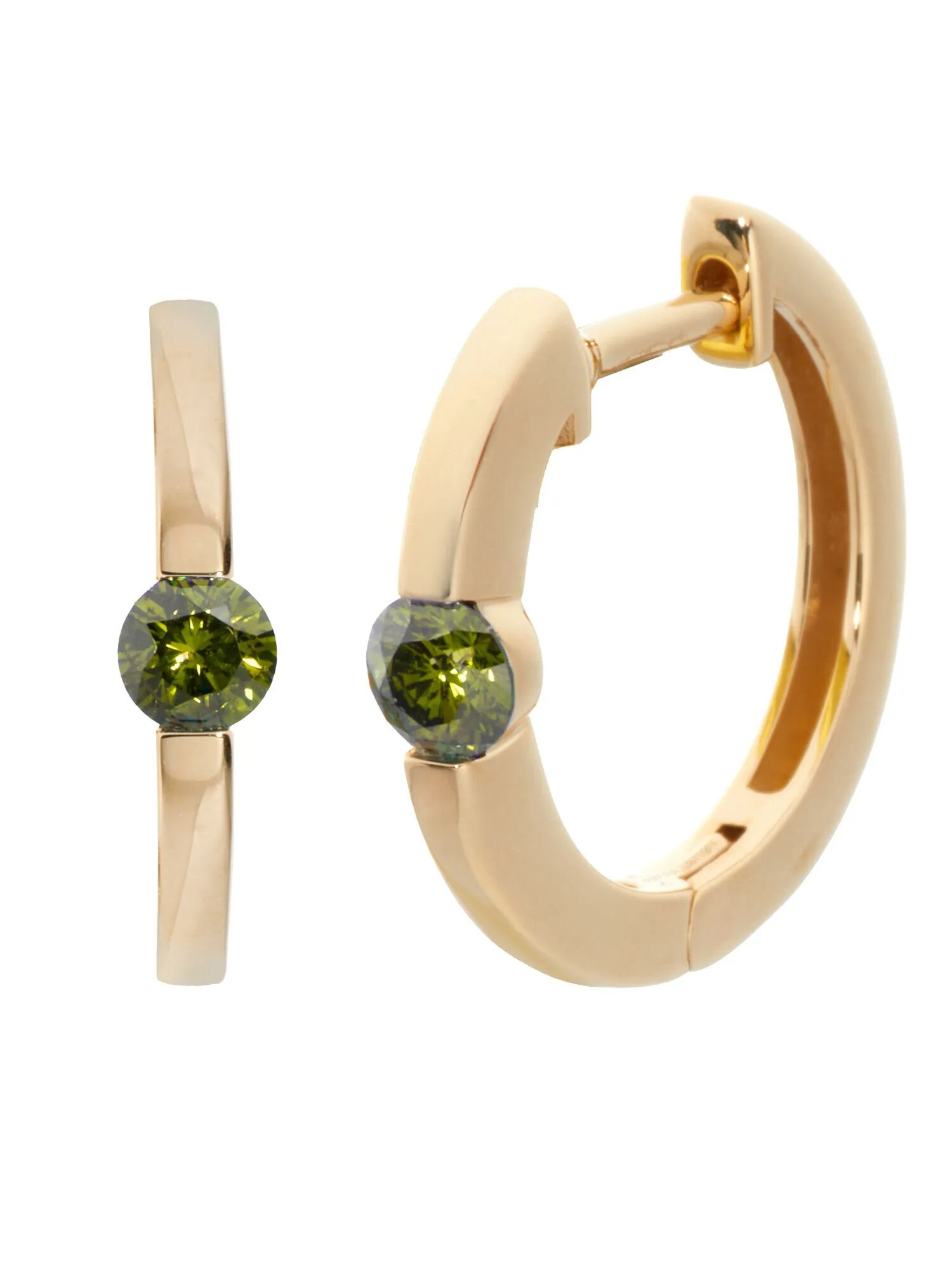 Die Klapp-Creolen aus Gelbgold 585 zeichnen sich durch ihre Erscheinung aus: Sie sind mit farbigen Diamanten im Brillantschliff besetzt, wahlweise in einem lebendigen Blau oder strahlendem Grün. Diese Diamanten fügen sich perfekt in das Gelbgold ein und verleihen den Creolen eine anmutige Note. Durch die Kombination von hochwertigen Materialien und einem raffinierten Design sind diese Creolen eine elegante Ergänzung für jeden Schmuckliebhaber.