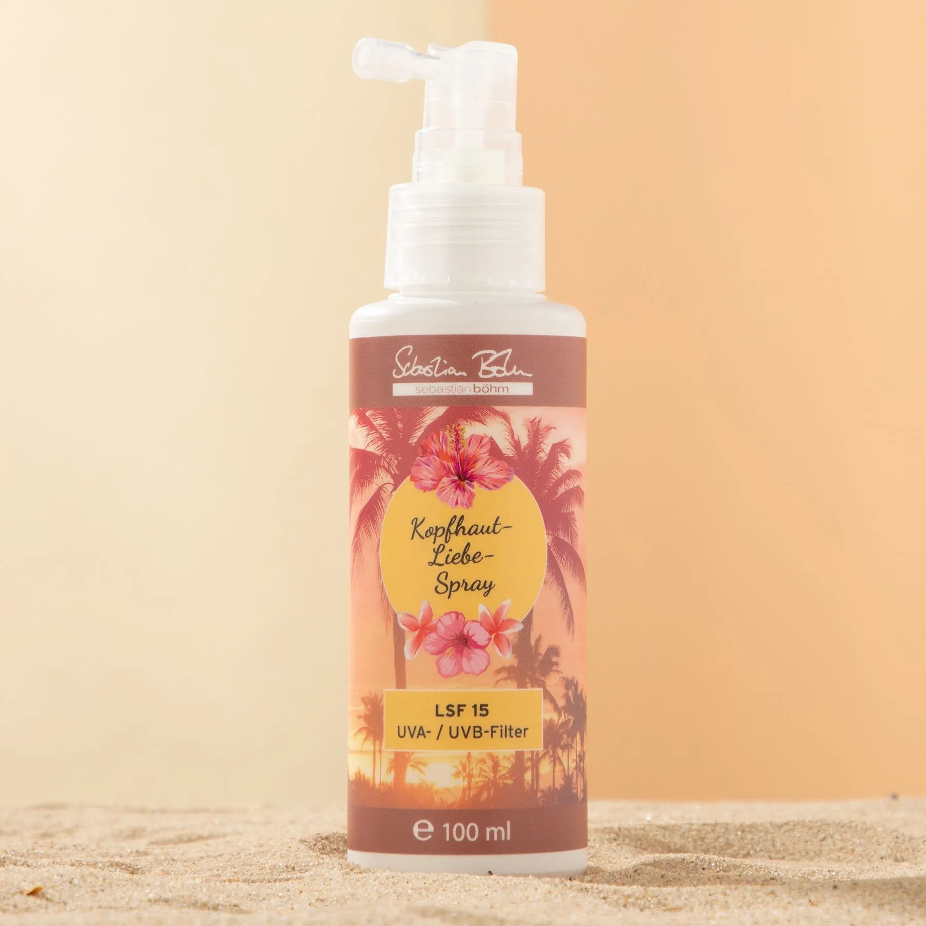 Die Kopfhaut gehört zu den sonnenexponierten Stellen des Körpers und ist deshalb anfällig für Sonnenbrand. Wird die oberste Hautschicht (Epidermis) durch Sonnenbrand auf der Kopfhaut geschädigt, können die Haare einige Wochen nach dem Sonnenbrand aufgrund dessen ausfallen. Das hochwertige Kopfhaut-Liebe-Spray von Sebastian Böhm schützt diese sensible Hautpartie effektiv vor UV/A und UV/B Strahlen und unterstützt zudem die Bildung von Vitamin B. Dabei ist die leichte Textur nicht fettend und legt sich kühlend und erfrischend auf Ihre Kopfhaut.