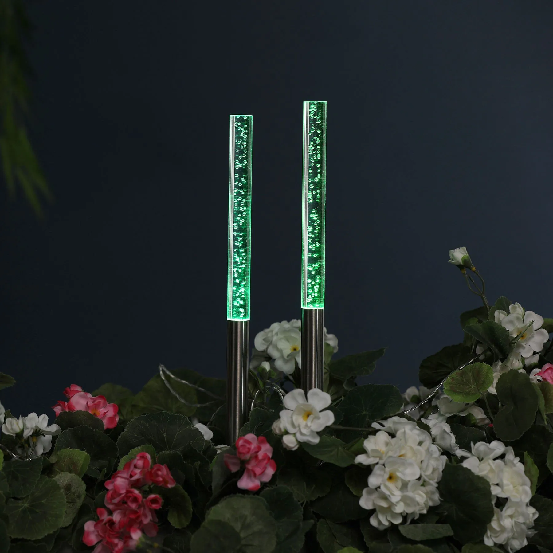 Die integrierten Solarzellen versorgen die Steckleuchten bis zu 8 Stunden mit umweltfreundlichem Strom. Die Lampen sind spritzwassergeschützt und eignen sich daher bedenkenlos für den Außenbereich. Der spezielle Farbwechselmodus sorgt nicht nur bei Ihrer nächsten Gartenparty für eine bezaubernde Beleuchtung!