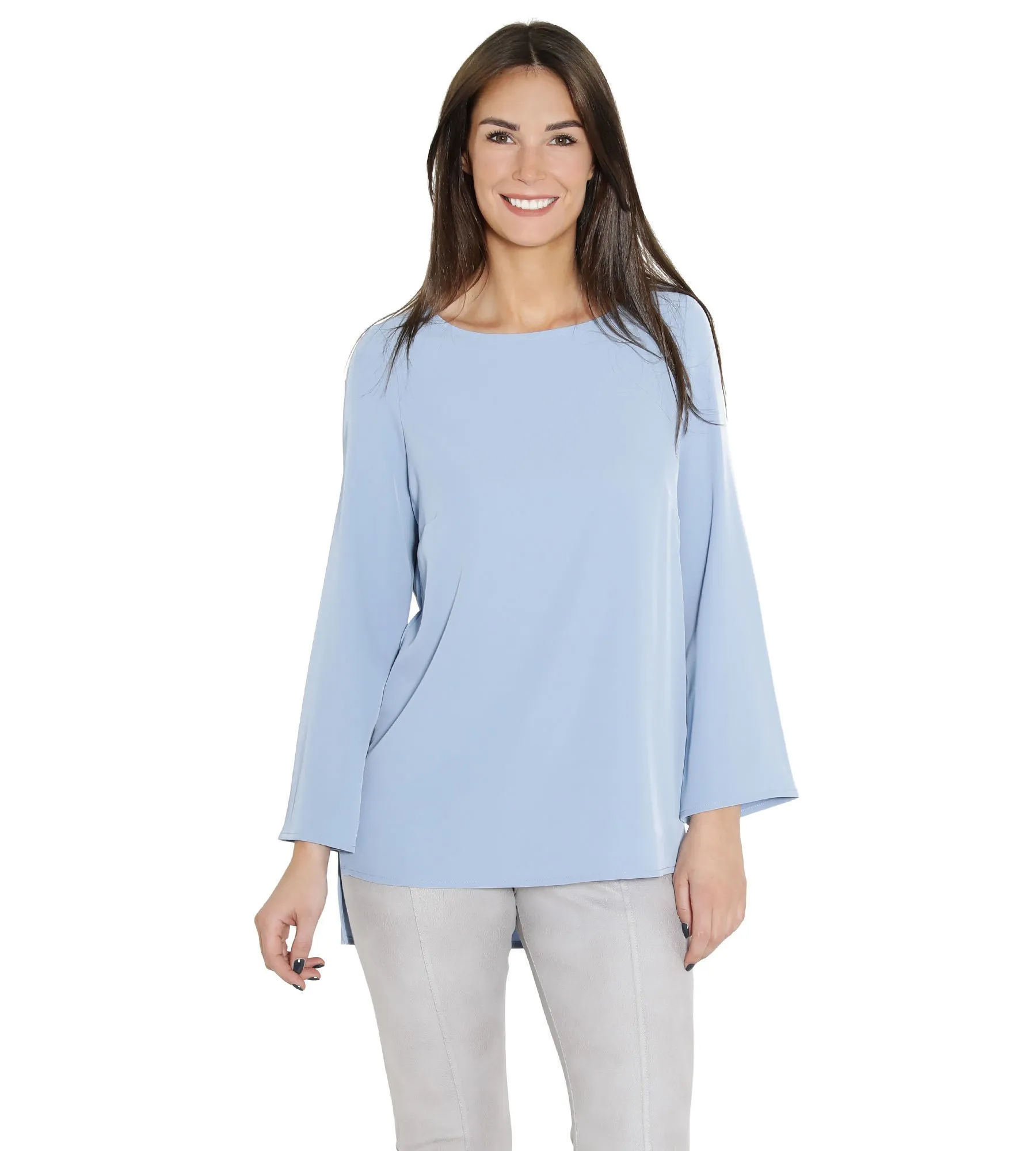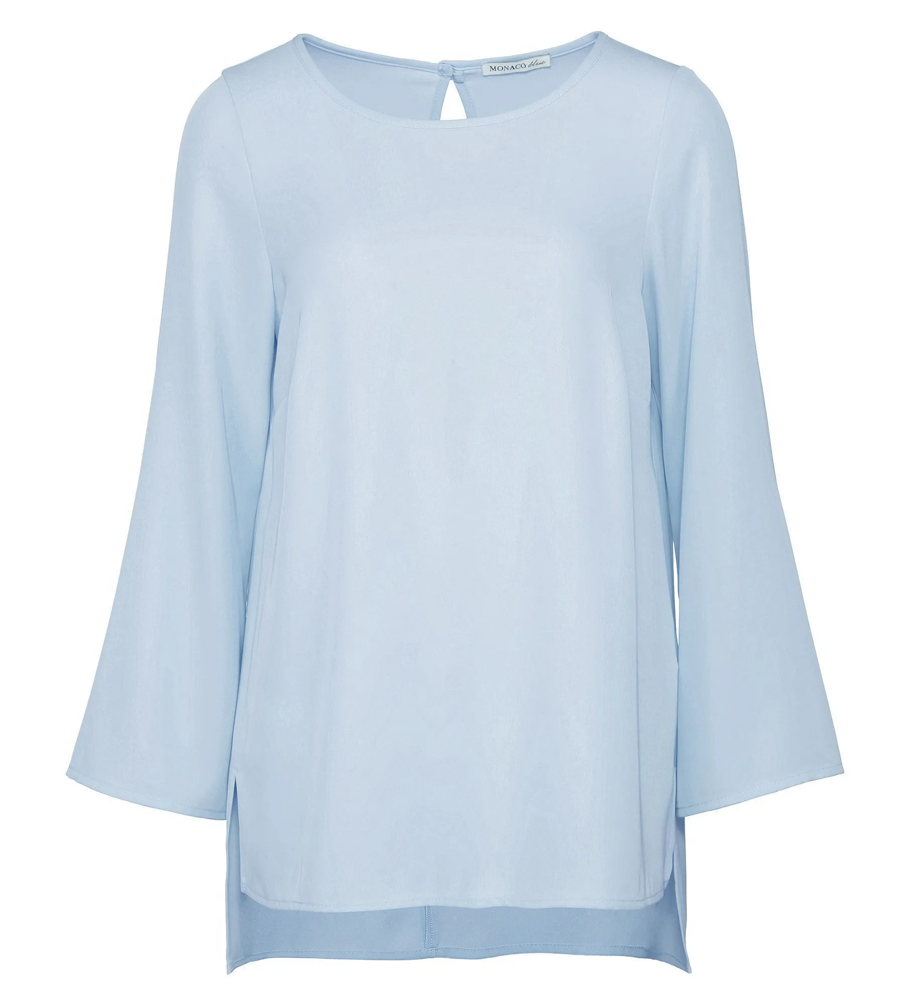 Ein zarter Blusentraum zum Wohlfühlen! MONACO blue präsentiert Ihnen diese zarte und lässige Longbluse aus zartem Krepp-Chiffon. Die leichte A-Linie und der weite Arm sorgen für hohen Tragekomfort. Diese Longbluse ist perfekt zu unseren schmal geschnittenen Hosen in Lederoptik. Kombinieren Sie als besonderen Blickfang gerne ein farblich passenden, buntes Tuch dazu.