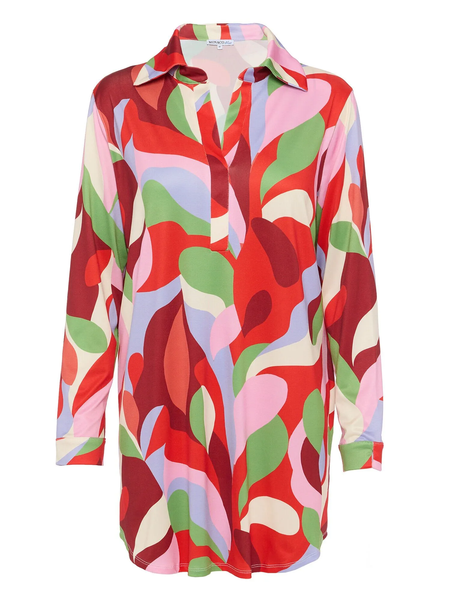 Entdecken Sie die Monaco Blue Longbluse mit ihrem auffälligen grafischen Print – ein modisches Statement für jeden Anlass. Ideal für Büro und gesellschaftliche Events, vereint sie Stil und Individualität. Der abgerundete Saum und das weiche Material garantieren ein angenehmes Tragegefühl den ganzen Tag über.