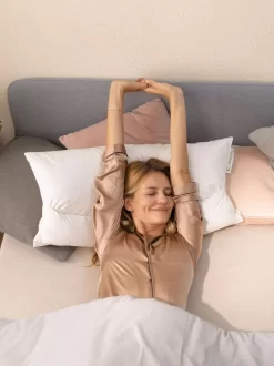 Das mySheepi Kissen ist eine bahnbrechende Innovation, die den Bereich um Hals und Nacken während des Schlafes sanft unterstützt. Durch die integrierte Nackenrolle werden die Muskeln entlastet und die Durchblutung des Körpers wird verbessert.