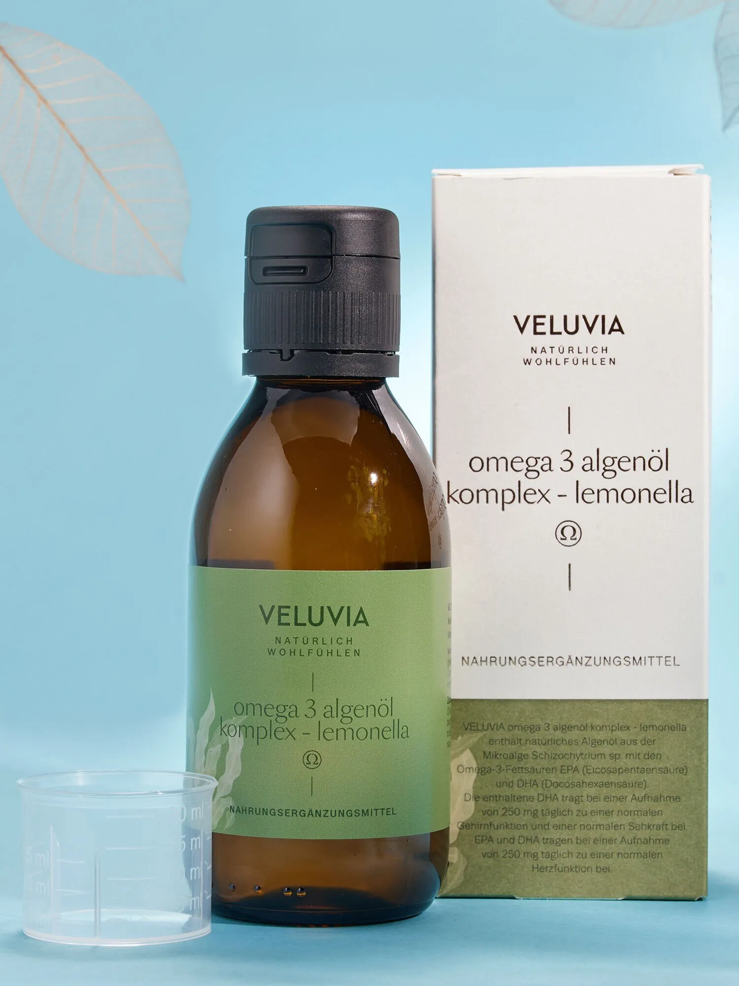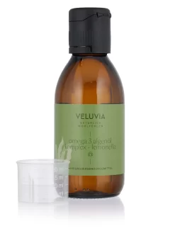 VELUVIA omega 3 algenöl komplex-lemonella enthĂ€lt das kostbare Ăl der Mikroalge Schizochytrium sp. mit den wertvollen Omega-3-FettsĂ€uren EicosapentaensĂ€ure (EPA) und DocosahexaensĂ€ure (DHA), welche bei einer Aufnahme von 250 mg tĂ€glich zu einer normalen Gehirnfunktion und Sehkraft (DHA) und zu einer normalen Herzfunktion (EPA und DHA) beitragen. FĂŒr noch gröĂeren gesundheitlichen Nutzen ist das Ăl mit Vitamin D3 angereichert, welches u.a. zur Erhaltung normaler Knochen und ZĂ€hne sowie einer normalen Funktion des Immunsystems beitrĂ€gt. NatĂŒrliches Zitronenöl sorgt fĂŒr ein angenehmes Geschmackserlebnis.