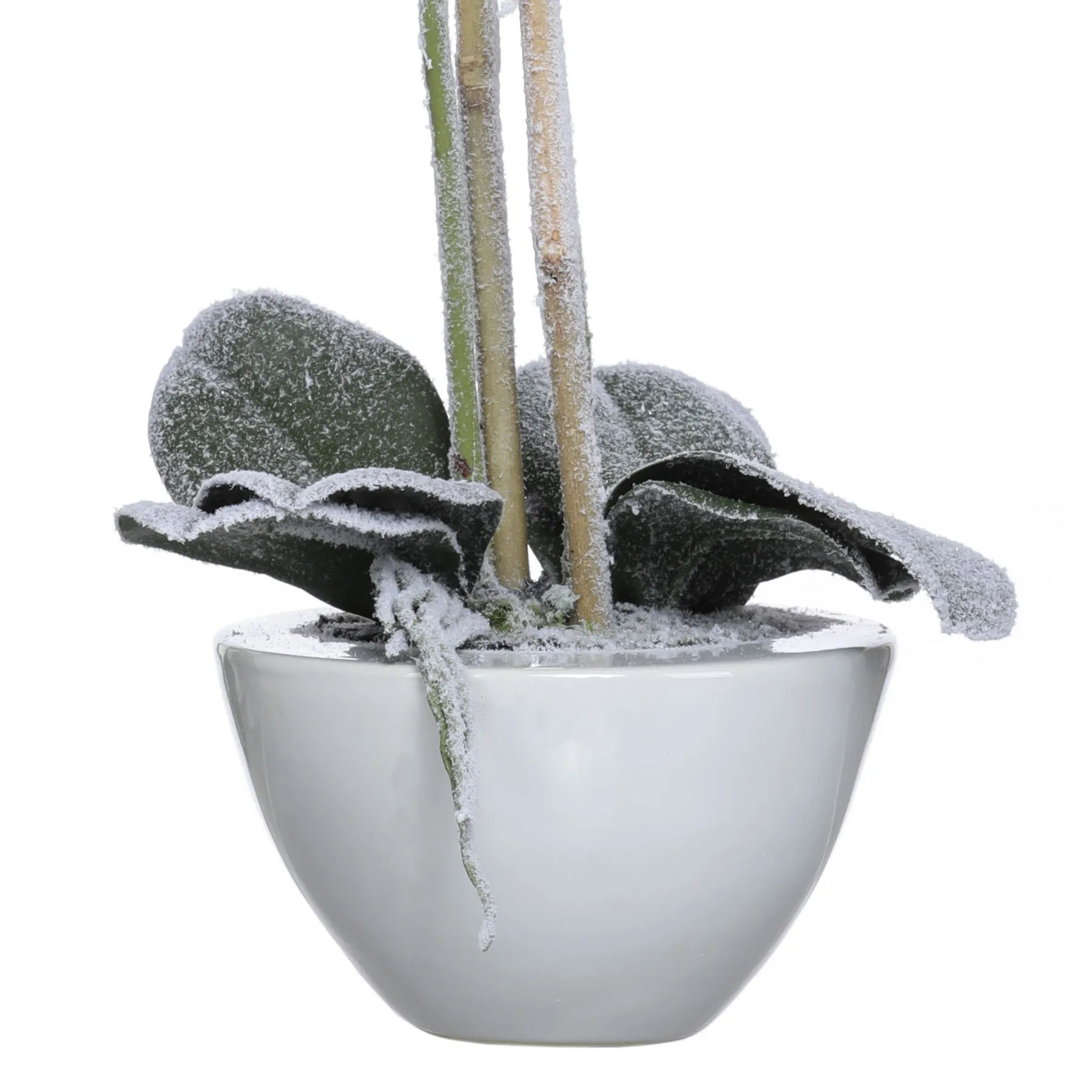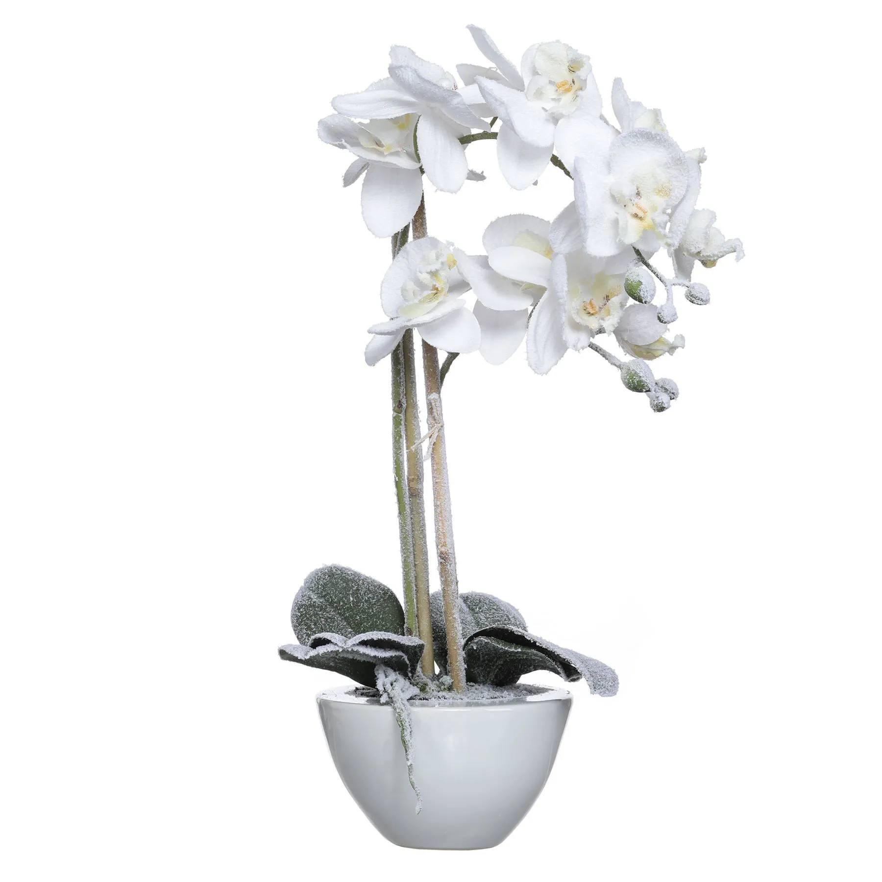 Belles Décorations Orchidee in Keramikschale mit Schnee, 49 cm