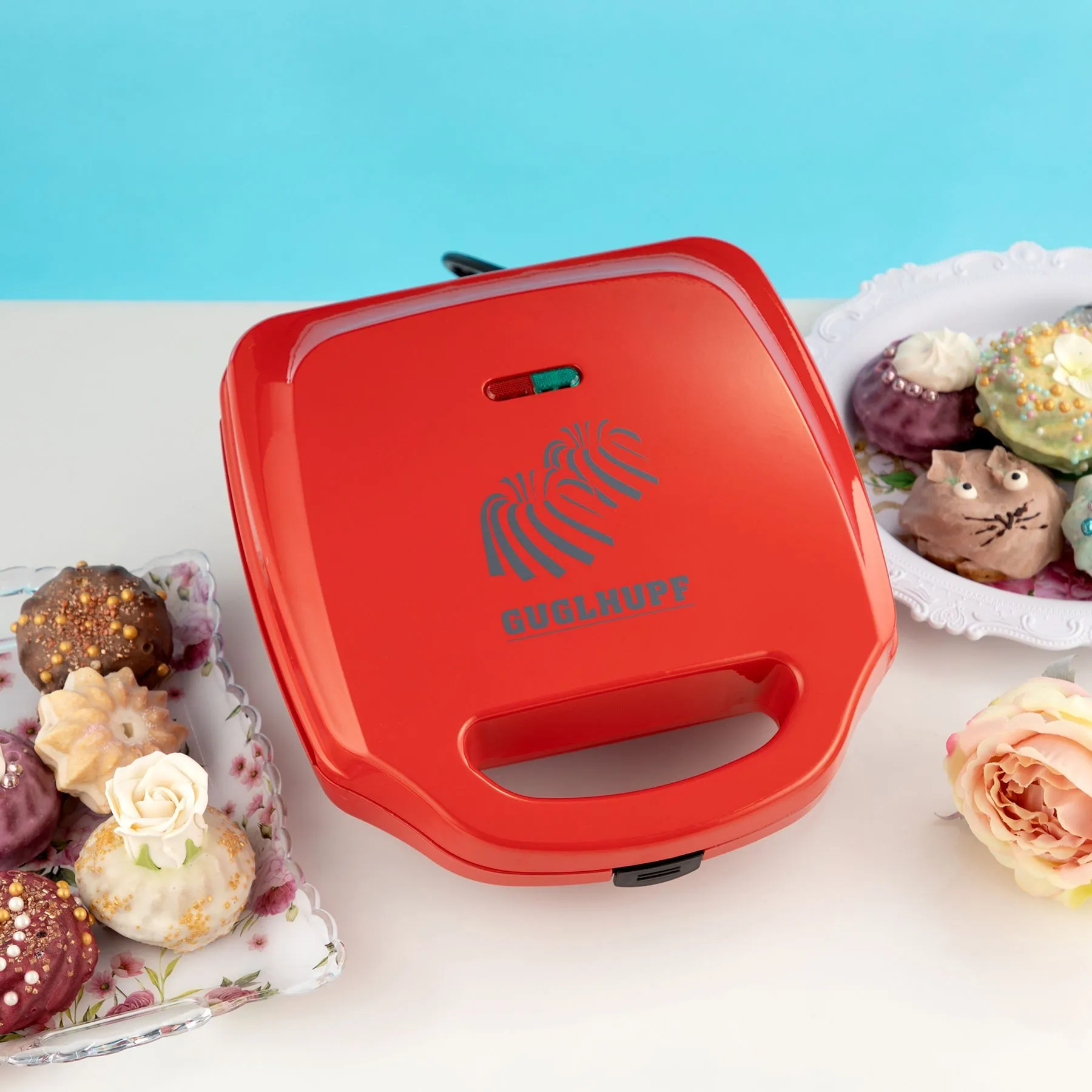 Liebe geht durch den Magen: Mit dem Guglhupfbäcker können Sie innerhalb von nur 7 Min sechs köstliche Guglhupf-Küchlein zaubern und machen sich und Ihren Gästen eine ganz besondere Freude. Die praktische Back-Ampel mit Kontroll-Lämpchen leuchtet Grün, sobald die Gaumenfreuden fertig sind. Das Cool-Touch-Gehäuse zum sicheren Öffnen und Schließen sowie die hochwertige Antihaftbeschichtung sind weitere Besonderheiten des Guglhupfbäckers. Außerdem sorgen 4 rutschfeste Füße für einen sicheren Stand.