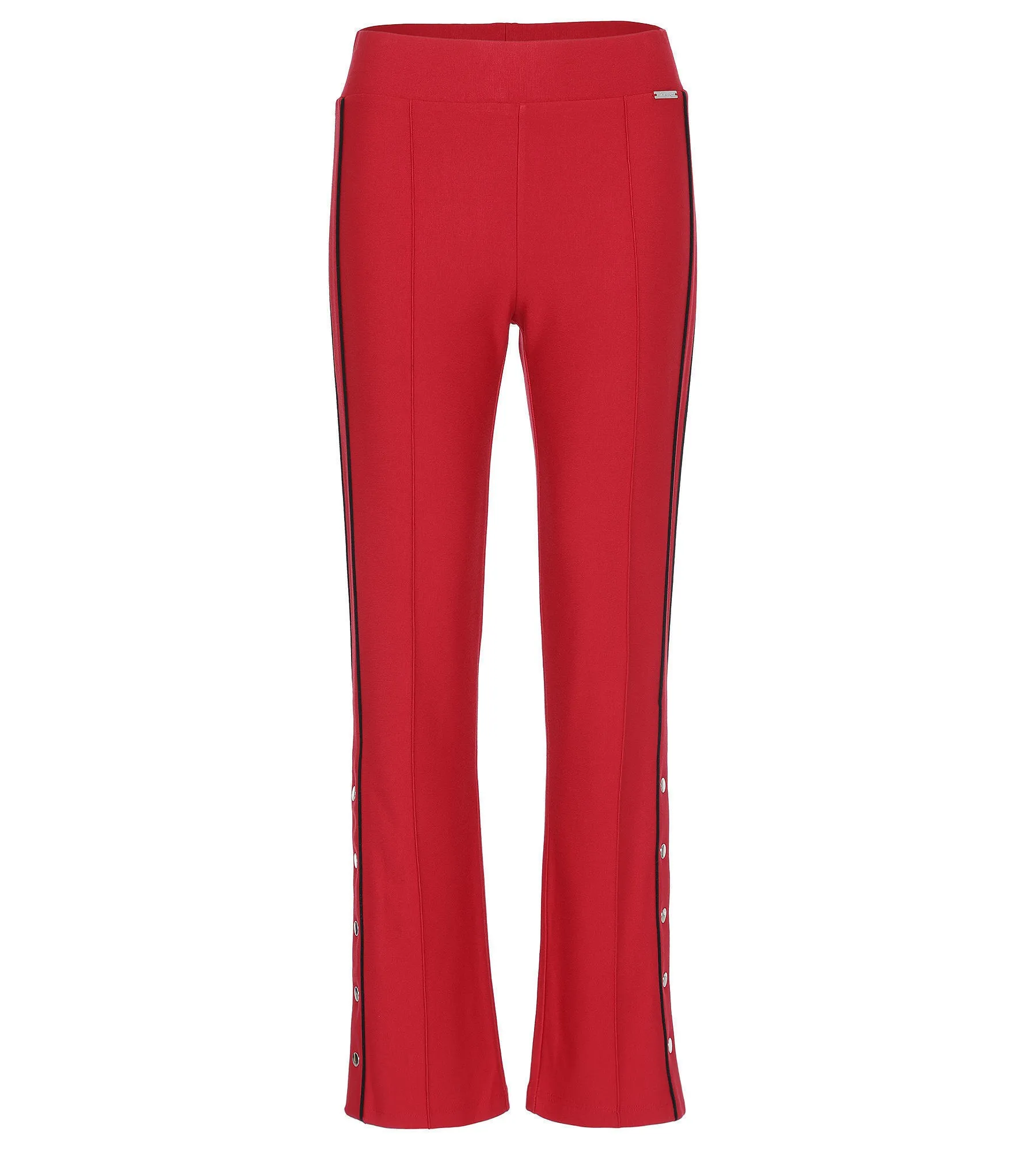 Stylisch in den Morgen! Mit der schicken Hose Posh haben Sie ein aufregendes KleidungsstĂŒck, in dem Sie einfach nur gut aussehen werden. 5 silberne Druckknöpfe an den Seiten werden zu funkelnden BlickfĂ€ngern. Galonstreifen strecken Ihr Bein optisch und verleihen der Hose einen sportlichen Touch. Kombiniert mit einer edlen Bluse erhalten Sie so einen einmaligen Look. Entscheiden Sie sich jetzt fĂŒr Ihre Favoritenfarbe in Blau, Rot oder GrĂŒn.