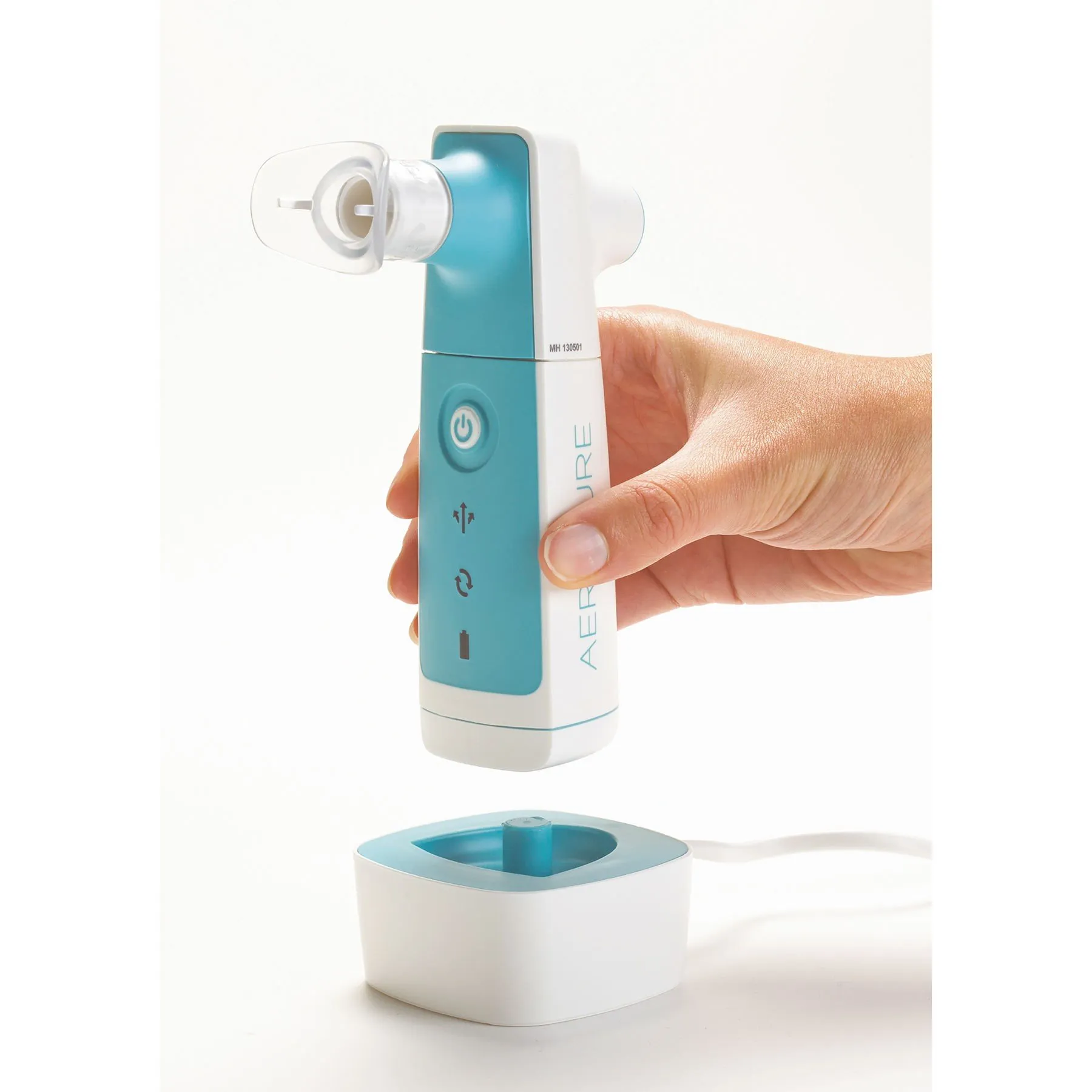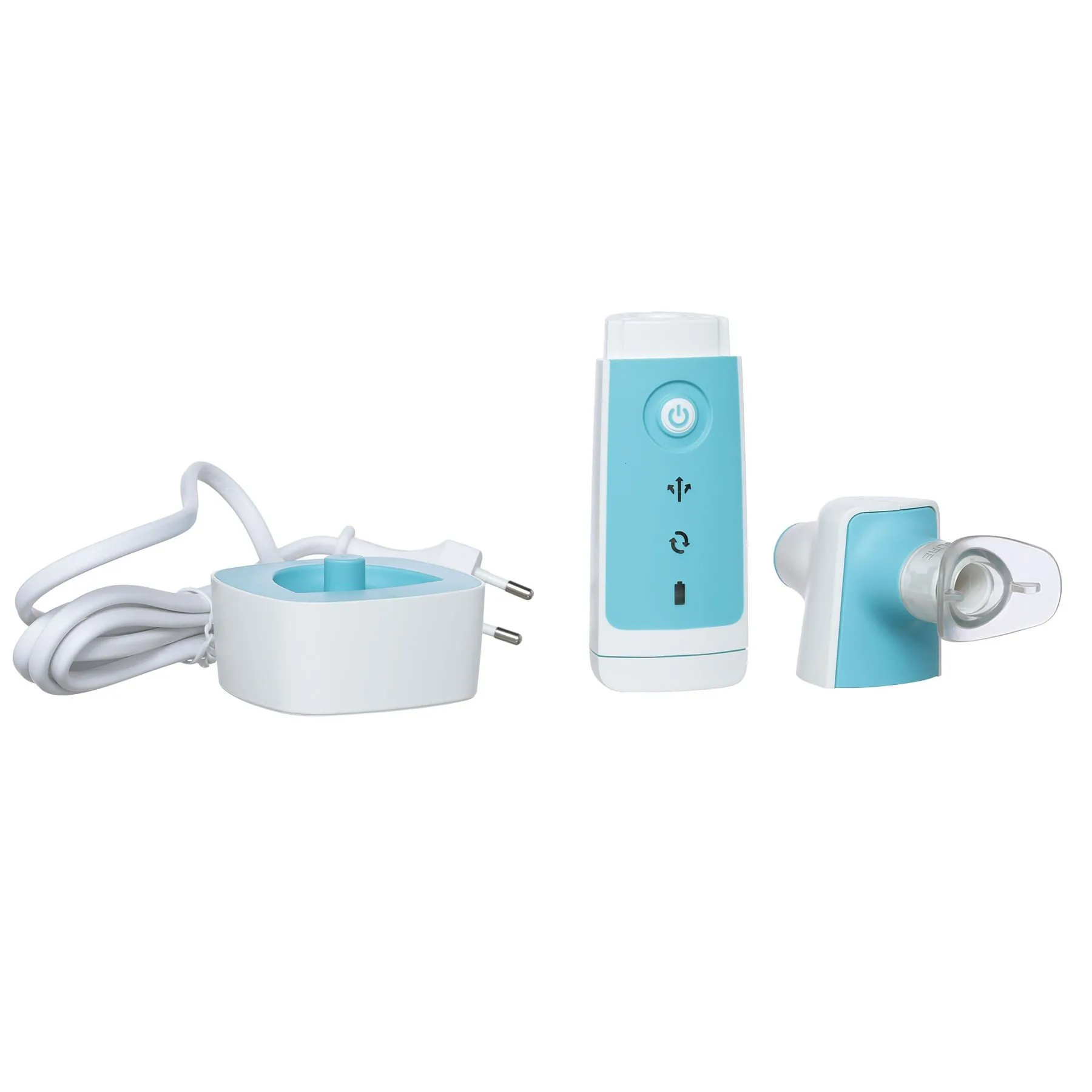 REVITIVE Aerosure arbeitet so, dass ein Ventil im Inneren des Geräts mit hoher Geschwindigkeit gedreht wird, um den Luftstrom in die Lunge hinein und aus ihr heraus schnell zu öffnen und zu schließen. Wenn Sie durch das Mundstück atmen, erzeugt das Oszillationsventil einen Widerstand, der die Brustwand in Schwingung versetzt, um die Lungenmuskeln zu trainieren und die Atmungsaktivität zu verbessern. Dadurch, dass Aerosure elektrisch betrieben wird, brauchen Sie nicht wie bei Geräten ohne Elektrobetrieb darauf zu achten, dass Sie das Produkt im richtigen Winkel halten, um einen ausreichenden Ausatemdruck zuerhalten.
