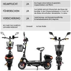 3. Führerschein: Zum Betrieb wird ein Führerschein der Klasse AM benötigt, das Mindestalter beträgt 16 Jahre. In den Führerscheinklassen A, B und T ist die Klasse AM enthalten.