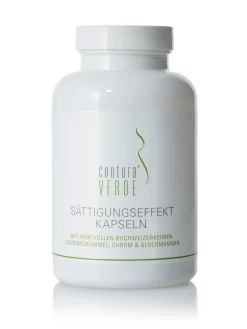 Die SÄTTIGUNGSEFFFEKT KAPSELN bestehen aus einem hochwertigen Wirkstoff-Komplex zur Unterstützung einer kalorienreduzierten Ernährung. Sie enthalten wertvolles Buchweizenkeimpulver mit dem vollständigen Spektrum aller acht B-Vitamine, Schwarzkümmelsamenpulver, Chrom sowie Konjak-Wurzelextrakt mit Glucomannan. B-Vitamine sind im Körper für zahlreiche Stoffwechselfunktionen zuständig und Chrom dient zur Aufrechterhaltung eines normalen Blutzuckerspiegels und hilft dadurch, Heißhunger zu reduzieren. Glucomannan ist ein leistungsstarker Pflanzenstoff, der aufgrund seiner Quelleigenschaften in Verbindung mit Wasser einen sättigenden Effekt besitzt und im Rahmen einer kalorienreduzierten Ernährung zu Gewichtsreduktion beiträgt. Die positive Wirkung von Glucomannan stellt sich bei einer täglichen Aufnahme von 3 g Glucomannan in drei Portionen à 1 g (= 2 Kapseln) in Verbindung mit 1-2 Gläsern Wasser vor den Mahlzeiten ein.