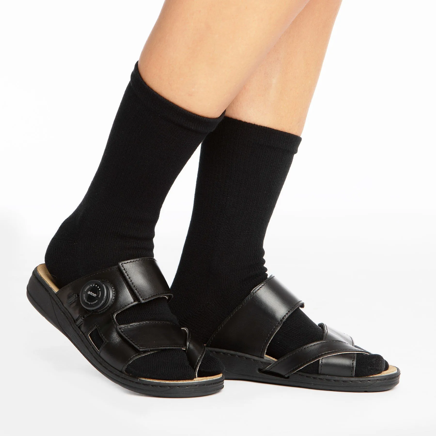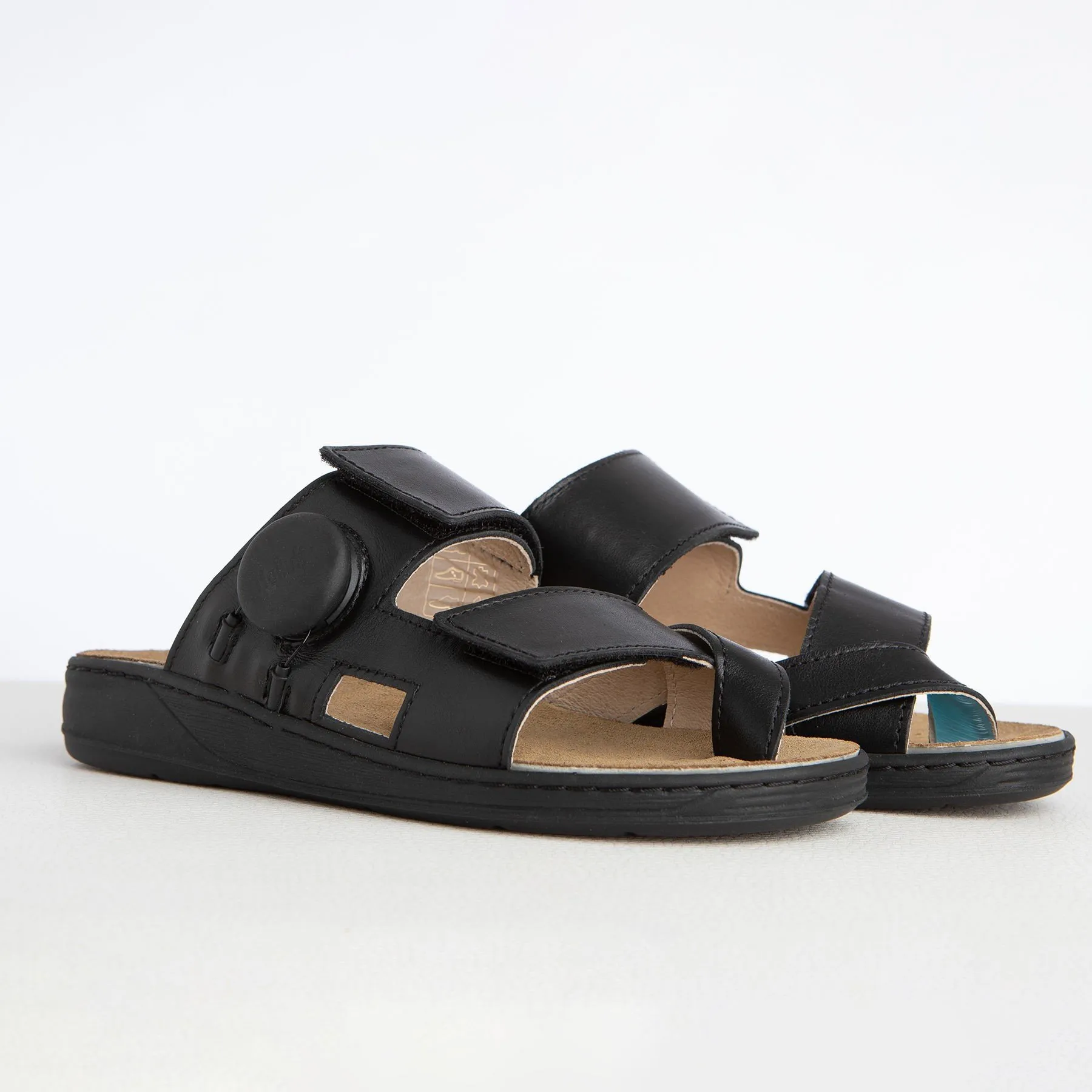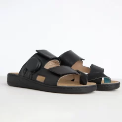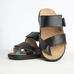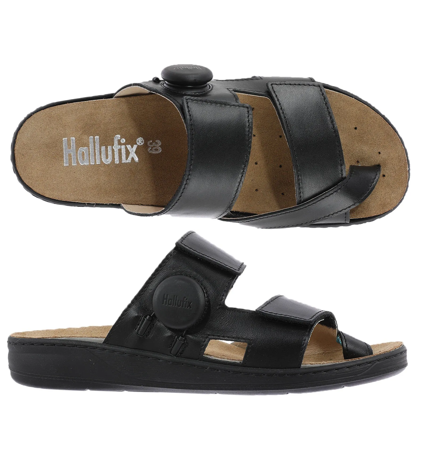 Etwa 10 Millionen Menschen in Deutschland leiden unter einem Hallux valgus und erleben durch diesen mitunter erhebliche Einschränkungen und starke Schmerzen. Sind auch Sie von Ballenzeh betroffen? Dann entdecken Sie bei uns die erste Therapie Sandale, die beim Tragen den Hallux Valgus behandelt. Die Hallufix® Therapie Sandale ist der passende Schuh bei einem Hallux valgus. Mit Hilfe der individuell einstellbaren Großzehschlaufe wird die Fehlstellung des Hallux valgus sanft korrigiert. Die eleganten und legeren Pantoletten sind aus hochwertigem schwarzem Glattleder gefertigt. Die bequemen Pantoletten können elegant, leger und in vielen Arbeitsbereichen optimal getragen werden.