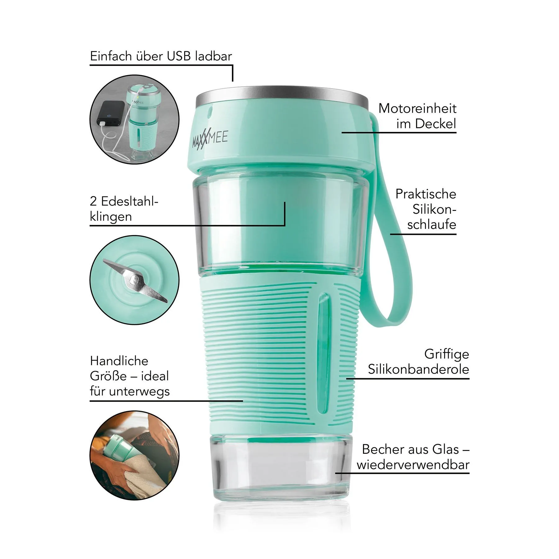 1x MAXXMEE Smoothie Maker inkl. USB-Kabel, 300 ml