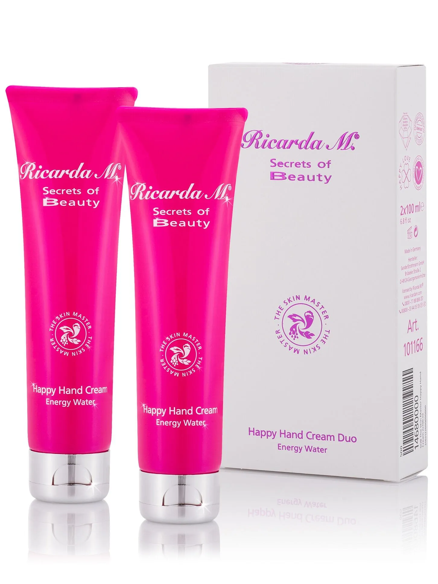 SOB THE SKIN MASTER Happy Hand Cream von Ricarda M. ist eine natürliche, pink strahlende Ultra-Soft Cream gegen Age Spots und enthält neben dem Skin Master Komplex, einer innovativen Anti-Aging Technologie aus der Blue Zone, eine Kombination aus zwei sekundären Pflanzenstoffen: Gartenkresse aus der Schweiz und der biologisch aktiven Form von Soja-Isoflavonen. Diese Kombination geht aktiv gegen die erhöhte Produktion von zwei Pigmenten vor: Melanin und Lipofuscin.
