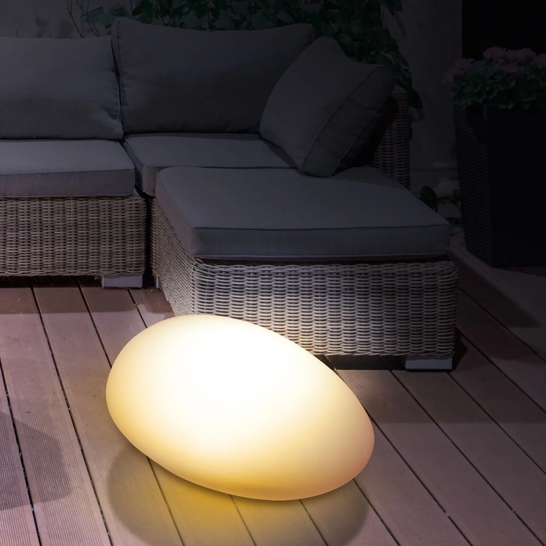 Lassen Sie sich von der wundervollen Lichtmagie des Solar-Dekosteins in den Bann ziehen! Ob drinnen auf der Fensterbank oder draußen auf dem Balkon, der Terrasse oder sogar ungeschützt im Blumenbeet, der schicke Deko-Stein wird Sie begeistern. Durch seine robuste und witterungsbeständige Materialbeschaffenheit stören ihn auch regenintensive Tage nicht und er leuchtet in all seiner Kraft in den schönsten Farben. Ein Solarpanel versorgt den leuchtenden Stein mit genügend Energie. Mehrere Einstellungsmöglichkeiten per Fernbedienung ermöglichen es Ihnen, aus 15 verschiedenen prachtvollen Farben zu wählen oder sich für eine der 4 automatischen Farbwechselvariationen zu entscheiden. Auch die Helligkeit können Sie bequem auf Ihre Bedürfnisse anpassen.