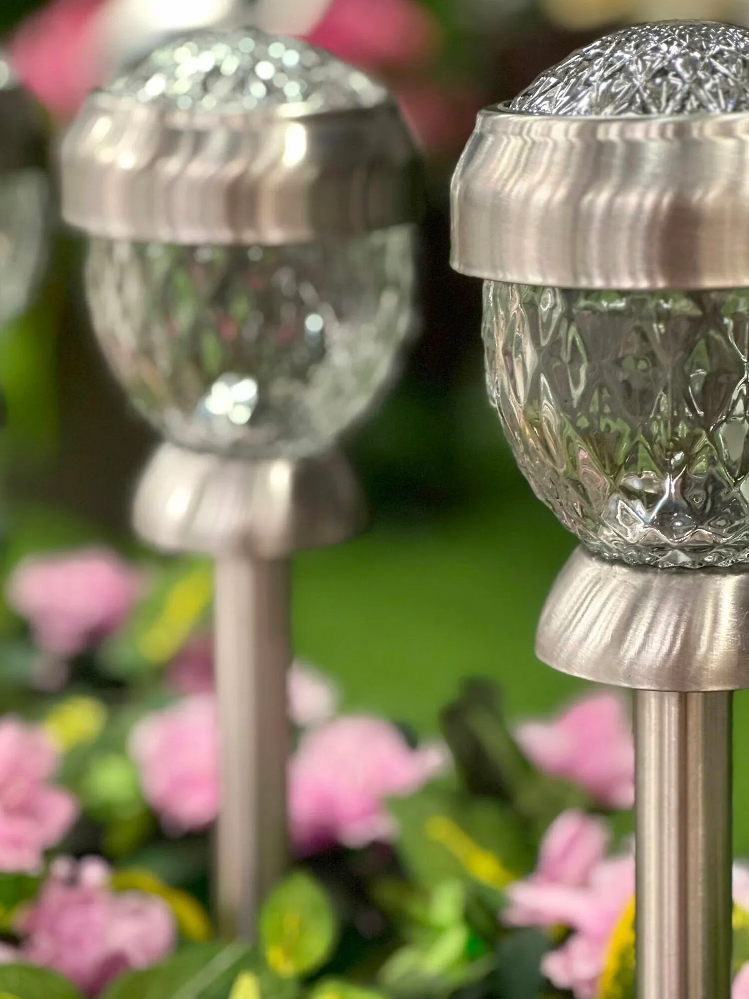 Die Kristallgläser erzeugen ein Leuchtbild, das Ihren Garten in ein warmweißes Licht erstrahlen lässt. Mit LEDs, einer einstellbaren Leuchtkraft von bis zu 20 Lumen und einem synchronen Farbwechsel bieten diese Solarleuchten ein faszinierendes Farbspiel. Der verbaute Akku speichert die Sonnenenergie und gibt diese mit Einbruch der Dunkelheit an die LEDs ab, was eine nachhaltige Energieversorgung gewährleistet. Dank des mitgelieferten Erdspießes und der Tischfunktion lassen sie sich vielseitig platzieren. Der Materialmix aus Edelstahl, Glas und Aluminium verleiht den Leuchten nicht nur ein ästhetisches Design, sondern auch Langlebigkeit und Widerstandsfähigkeit gegenüber den Elementen.