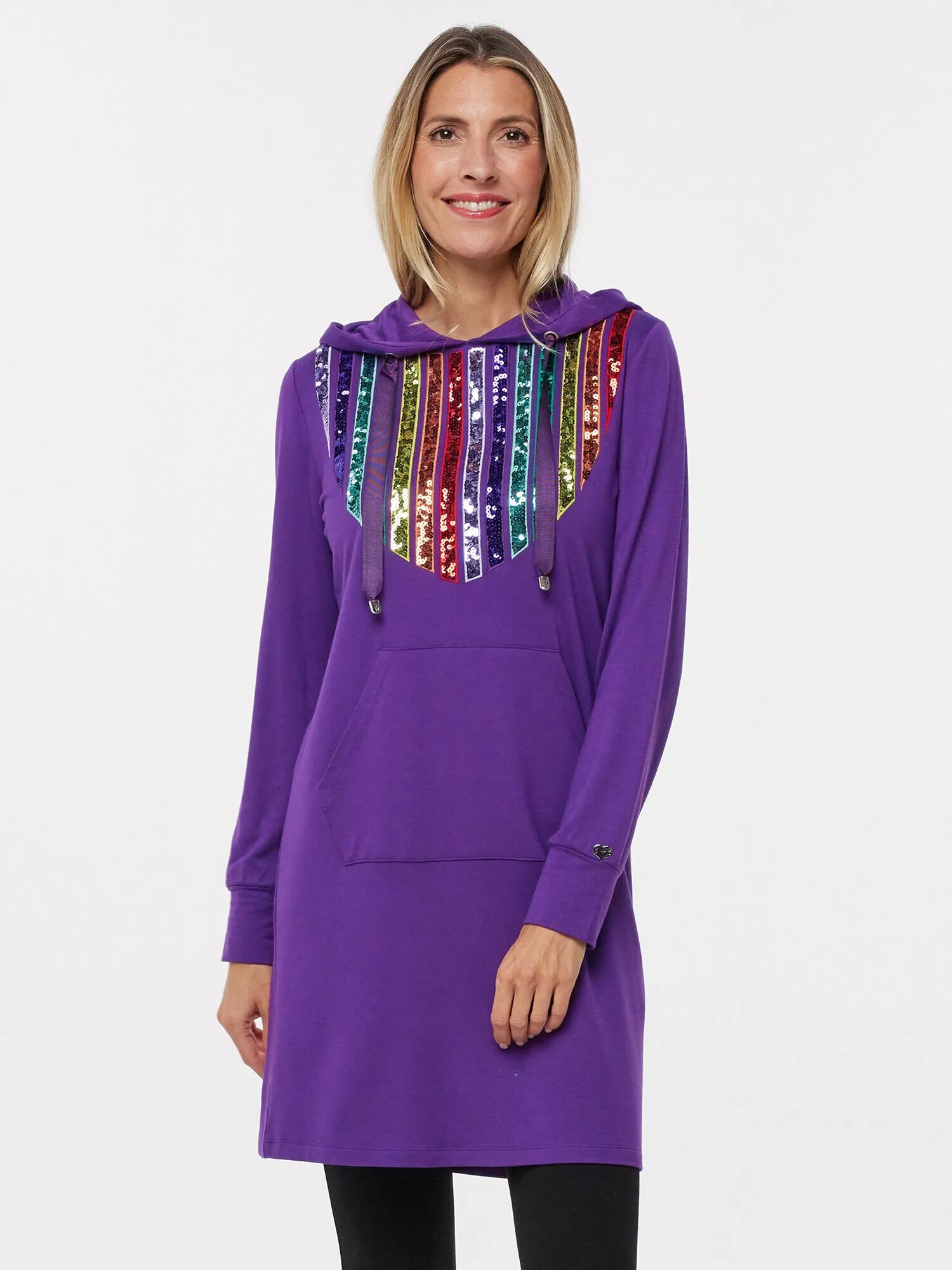 - Sweatshirtkleid mit Kapuze und Pailletten