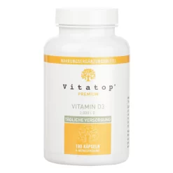 Vitatop® VITAMIN D3 mit 2.000 I. E. ist ein hochwertiges Nahrungsergänzungsmittel, das zusätzlich wertvolles Vitamin K2 in Form des Markenrohstoffs VitaMK7® enthält.
