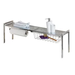 Mit dem praktischen Spülbeckenregal Exquisit wird mehr Stauraum in der Küche geschaffen ganz ohne Umbau-Maßnahmen. Ungenutzter Platz hinter der Spüle wird ganz einfach nutzbar gemacht. Das praktische Regal bietet beim Einsatz, z. B. am Spülbecken eine zusätzliche, dekorative Ablage für alle Spülutensilien. Im herausziehbarem Ablagekorb können Schwämme, Lappen und Bürsten trocken aufbewahrt und an einer separaten Halterung zudem die Küchenrolle griffbereit angebracht werden.