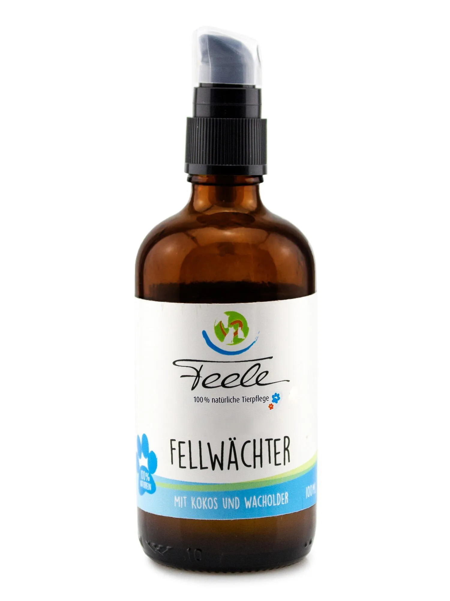 Anwendung: Bitte in die HandinnenflĂ€chen geben und auf dem Fell von RĂŒcken, Beinen, Hals und Kopf verteilen (nur bei unverletzter Haut nutzen). Die Wirkung hĂ€lt mindestens drei bis vier Tage an. Geht ein Hund schwimmen oder wird das Tier durch Regen nass, dann den Feele âFellwĂ€chterâ noch einmal auf das trockene Fell auftragen.
